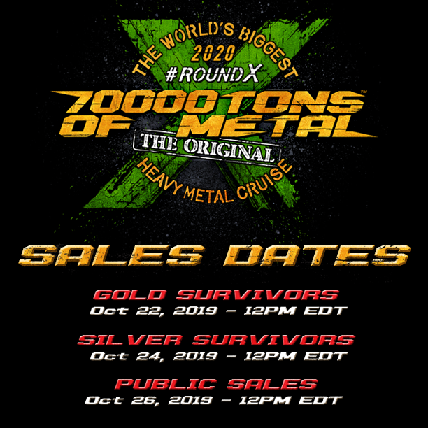 After a late start announcing bands for 2020 that had long-time cruisers concerned for the future of the event, 70000 Tons of Metal 2020 has announced their first bands for 2020. Black Metal legends Emperor we the first band announced, will Epica soon after, and now Haggard. Many more bands will be announced right up until the cruise. Gold and Silver level “Survivors” – past cruisers, are getting email codes for pre-purchase this weekend, with the public on sales taking place next week, October 26th. 70000 Tons of Metal Cruise takes place from January 7th to 11th 2020 and sails from Miami/ Ft. Lauderdale to Cozumel, Mexico. Tickets and more info at the link below.