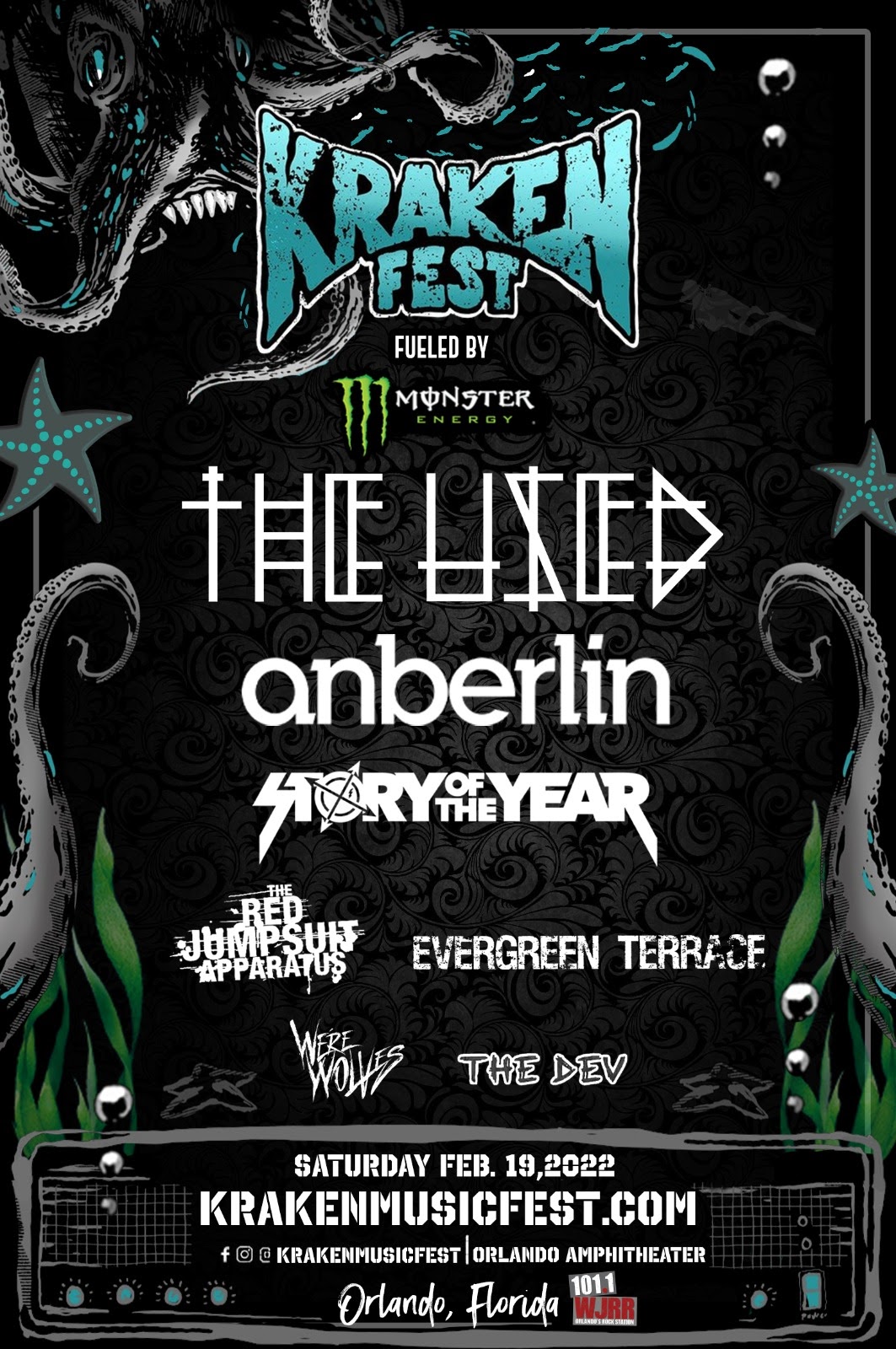Kraken Music Fest takes place at The Orlando Amphitheater in Orlando, Florida Saturday, February 19th, 2022 and features performances from The Used, Anberlin, Story Of The Year, The Red Jumpsuit Apparatus, Evergreen Terrace, We’re Wolves, and The Dev. The fest has also announced set times for the day! As Florida’s first independent rock festival, Kraken Fest has quickly become a main event, with last year’s festival seeing thousands of fans in attendance supporting headliner Taking Back Sunday. Tickets are available at the link below!