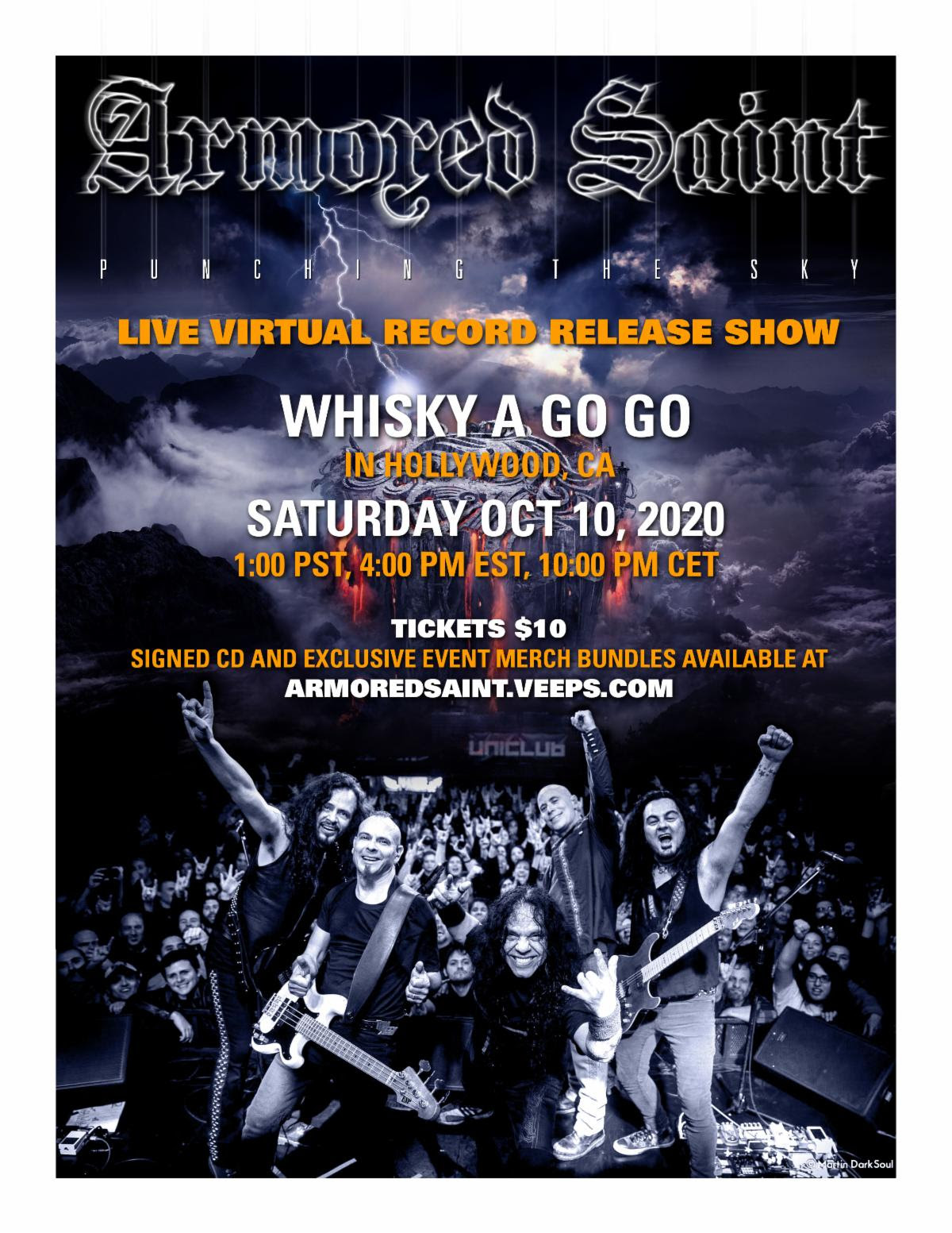 On Saturday, October 10th at 1PM PST//4PM EST//10PM CET, Armored Saint will host a live record release show online for Punching The Sky. Set to take place at the Whisky A Go Go in Hollywood, CA, Armored Saint will be performing a full set, including 4 new songs from Punching the Sky. Additionally, the band will be answering select questions from fans who submit them via a post on their Facebook page: https://www.facebook.com/thearmoredsaint