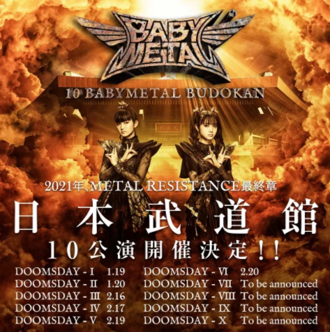 オフィシャル先行受付中(2021年1月3日23:59まで)?https://t.co/nh6LfI2iSs#BABYMETAL #BABYMETAL_BUDOKAN pic.twitter.com/XW2CrBrKuR— BABYMETAL (@BABYMETAL_JAPAN) December 31, 2020