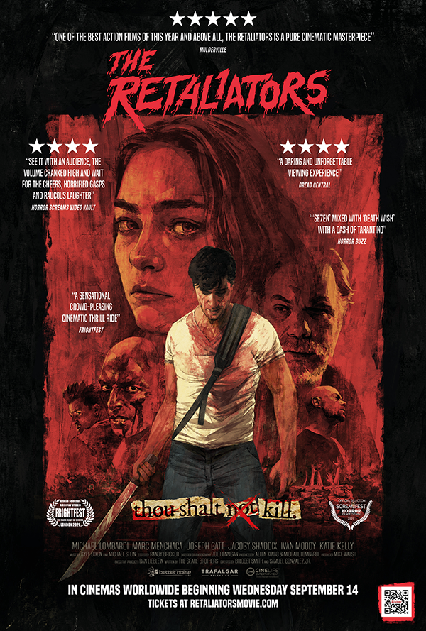 Horror-thriller feature The Retaliators, from Better Noise Films, producers of The Dirt, and US distributor CineLife Entertainment, alongside international distributor Trafalgar Releasing, are releasing the independent feature film across North America and in theaters internationally, in countries such as UK, Canada, France, Germany, Italy, Mexico, Australia, and Argentina, simultaneously.