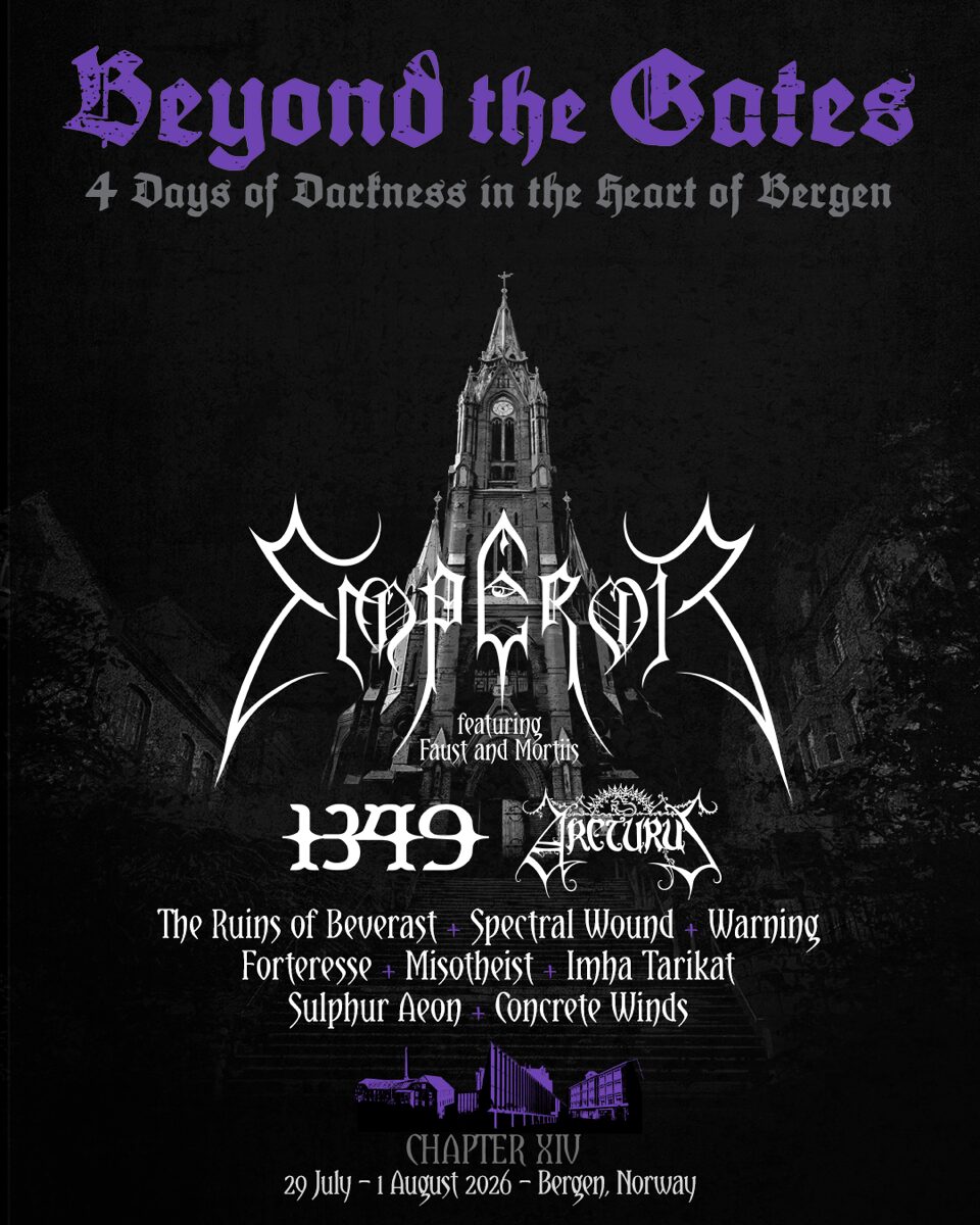 Beyond the Gates is now pleased to announce the first batch of bands for the 2026 edition, Chapter XIV! Beverast, Spectral Wound, Warning, Forteresse, Misotheist, Imha Tarikat, Sulphur Aeon + Concrete Winds w/ more TBA!