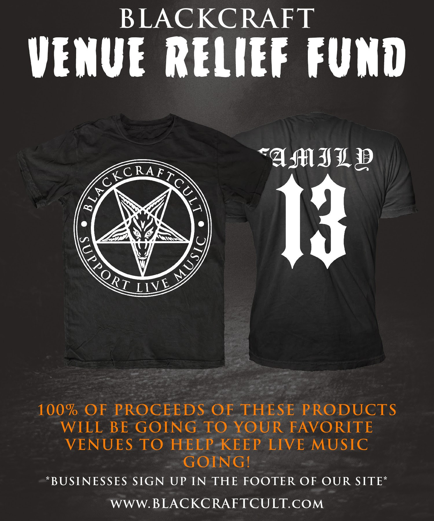 Blackcraft Cult is happy to announce its Music Relief Fund. We are raising money to go to some of your favorite Live Music venues to help keep live music going. 100% of the proceeds of these two items are going into our fund to allocate to these venues.