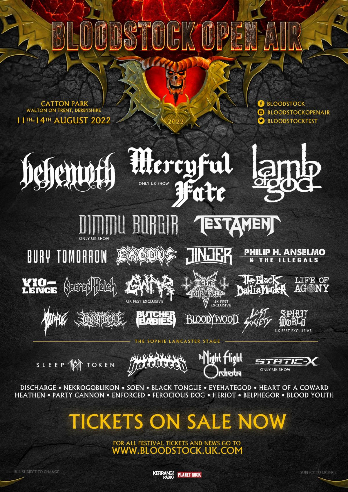 Joining Behemoth as 2022’s Ronnie James Dio main stage headliners are Lamb Of God and Mercyful Fate. Also landing main stage slots across the weekend are Dimmu Borgir, Philip H. Anselmo & The Illegals Playing Their Pantera Set, Testament, Exodus, Black Dahlia Murder, Gwar (In A Uk Festival Exclusive), Bury Tomorrow, Sacred Reich, Life Of Agony, Butcher Babies, Vio-Lence, Bloodywood, Jinjer, Lorna Shore, Doyle, & Lost Society. Over On The Sophie Lancaster Stage Expect To See Hatebreed, Sleep Token, Eyehategod, Discharge, Static-X, The Night Flight Orchestra, Enforced, Party Cannon, Soen, Heathen, and Nekrogoblikon.
