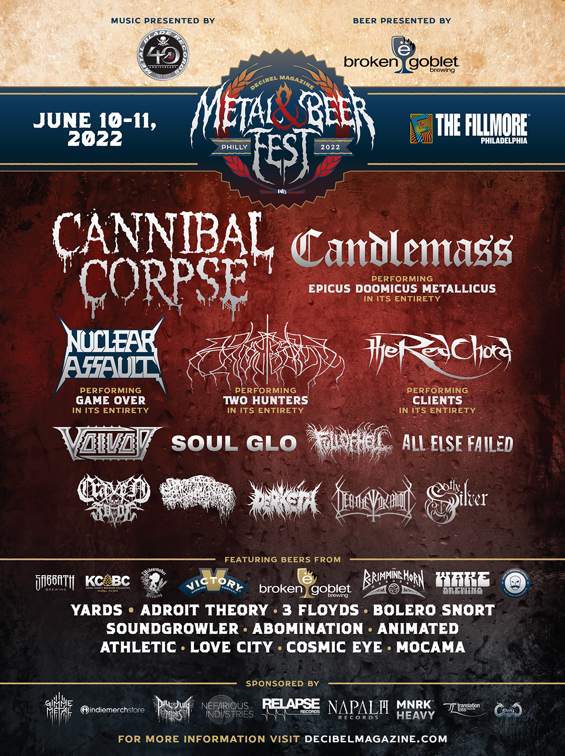 One of the highlights of the American Metal festival scene will be Decibel Magazine’s Metal and Beer Fest, taking place une 10-11, 2022, in Philadelphia this weekend. Tremendous metal legends, exclusive performances, unique craft beers on tap and much more are in store for fans this weekend. Main sponsor Metal Blade, celebrating their 40th anniversary, will unleash their own beer: Revision Brewing x Metal Blade Beer – a West Coast IPA!