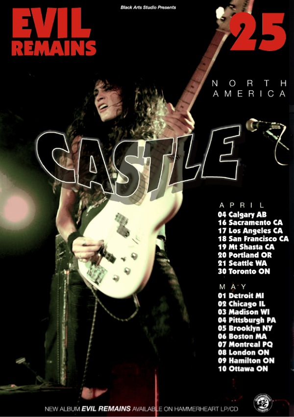 US/Canadian heavy doom outfit, Castle, are just about to hit the road with an 18 date North American tour. Starting in Calgary, AB, on April 4th, it comes in support of their recent album, Evil Remains. Following this, the band heads out to Europe for another 10 shows. Find the live listings in the article below.