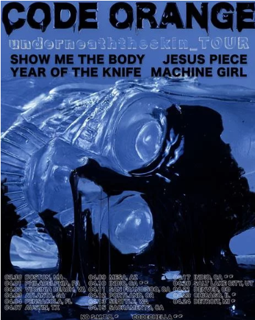 Code Orange has booked a U.S. headline tour set to get underway this spring. The “Underneaththeskin_ Tour”, which is set to kick off March 30 in Boston, Massachusetts, will feature special guests Show Me The Body, Jesus Piece, Year Of The Knife and Machine Girl. Pre-sale tickets will be available today, January 21 at 12:00 p.m. PT to Citi card members, with additional artist pre-sales beginning Wednesday, January 22 at 10:00 a.m. local time. All remaining tickets will go on sale Friday, January 24 at 10:00 a.m. local time. The band is dropping their highly-anticipated new album Underneath on March 13 via Roadrunner Records.