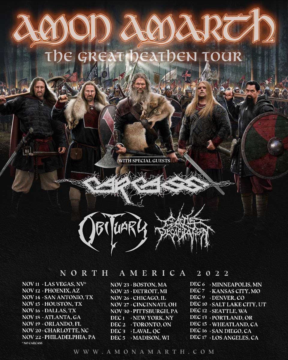 Metal masters Amon Amarth have been chasing the peasants away for thirty years. They are presently on tour in support of The Great Heathen Army (Metal Blade) record that came out earlier this year, and they brought along Cattle Decapitation, Obituary, and Carcass for the ride.