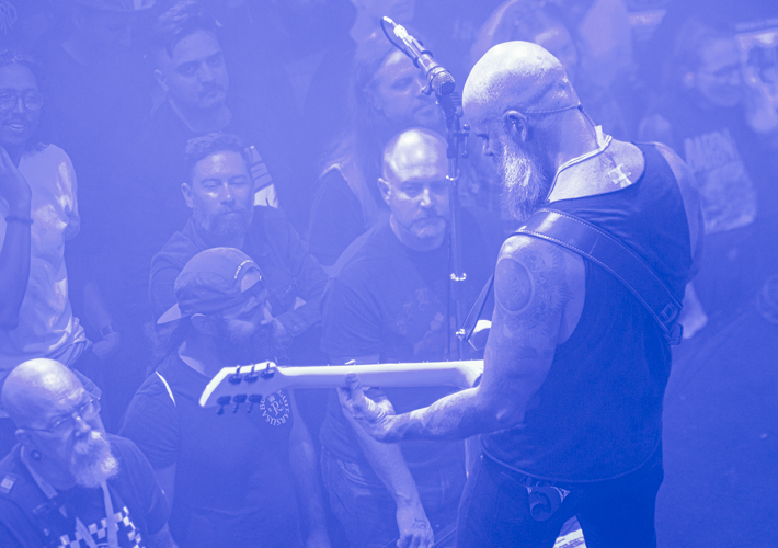 Coming on stage to The Golden Girls theme song “Thank You For Being A Friend,” you could already see a simmering moshpit starting, and folks just laughing and smiling. Weedeater is an all-out assault on your senses, the volume punishing, bordering on abuse, even with good earplugs in. Fans seem to look up from time to time to observe the band on stage, but mostly it’s just a half-room circle pit at all times! Weedeater is a powerful force of sludge riffs, screams, and Dixie’s howling delivery. Always a fun band to see live anywhere in the world.