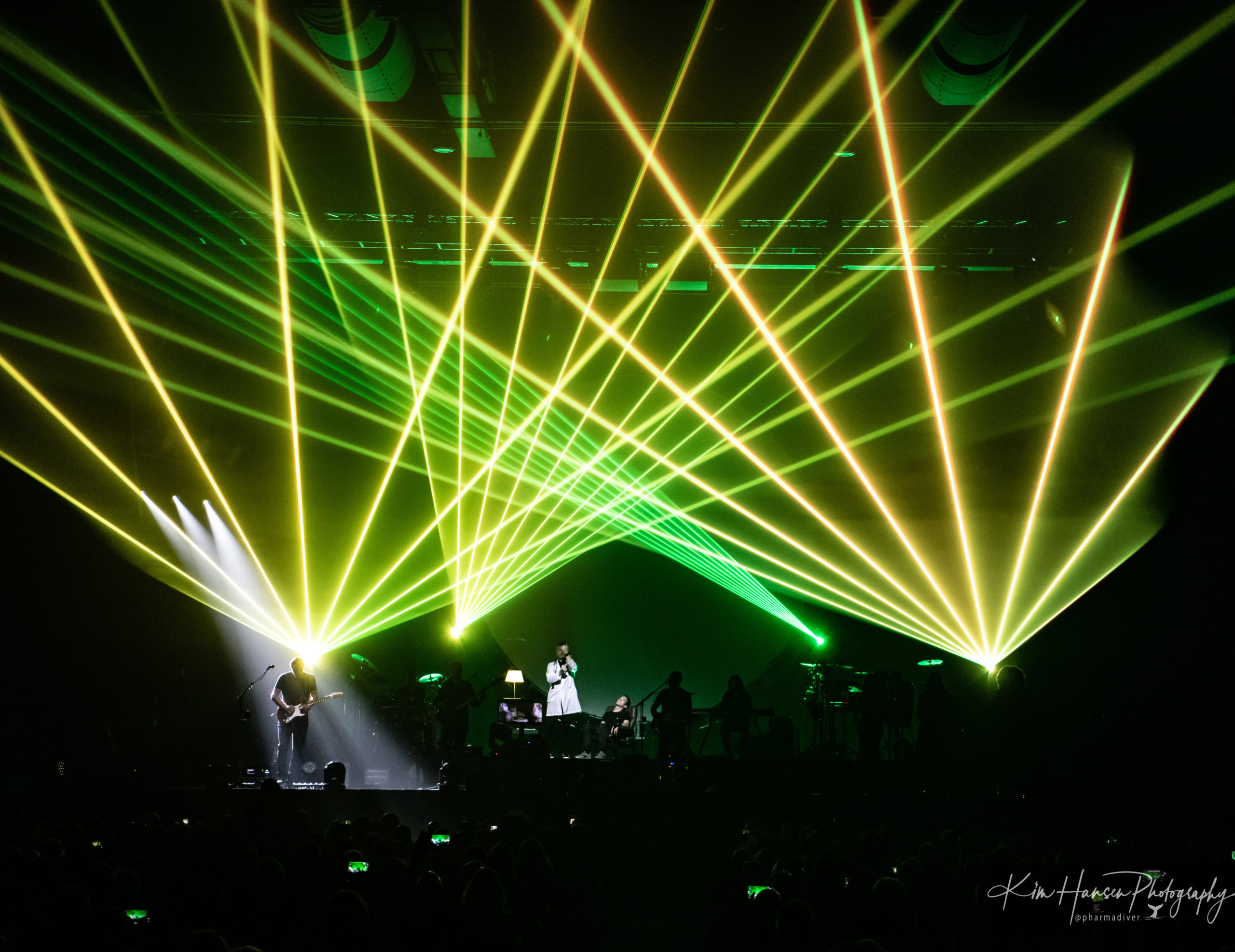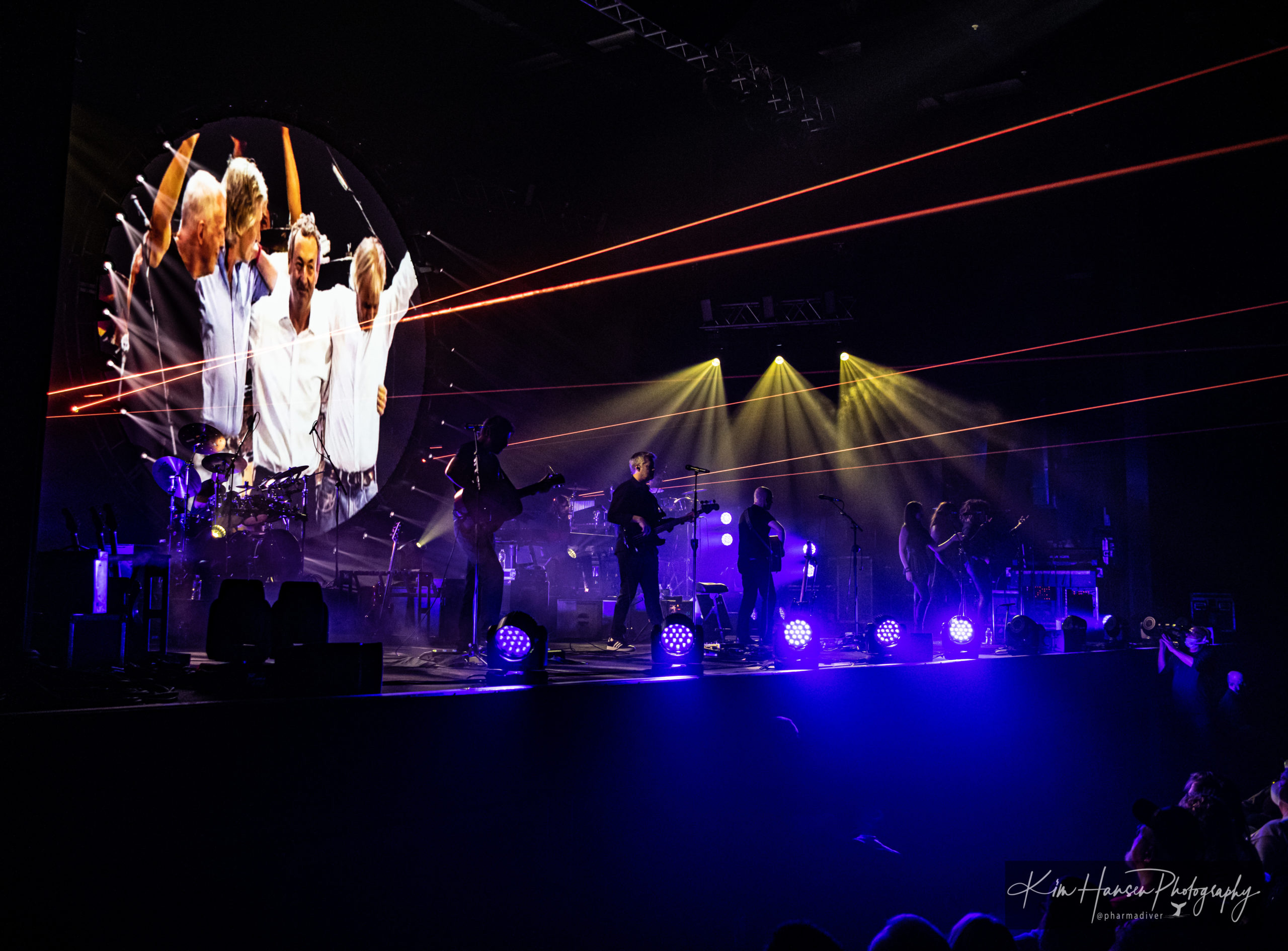 Wait, what’s going on? Have they forgotten Roger Waters’ contributions? My fears are quickly put to rest as the first notes of ‘Welcome To The Machine’ echo through the room. All the while, lights go in every direction, images appear across the massive circle dominating the stage and lasers paint waves and colored grids in the fog of the room.