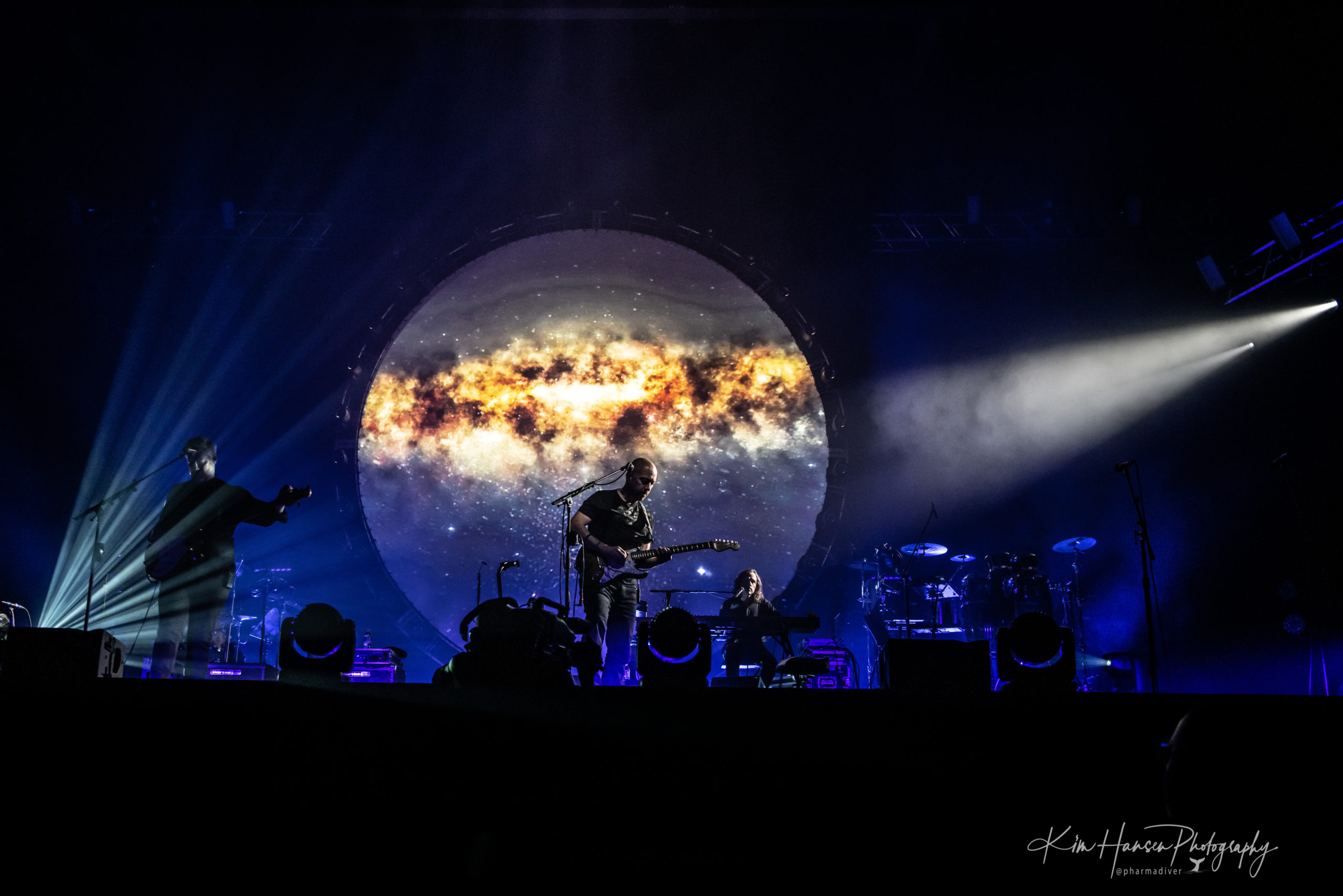 Everyone is settling in, seats are filling up, and then darkness. The crowd roars to life as the ethereal strains of ‘Cluster One’ filter through the room, a deeper cut from the Division Bell that allows everyone a glimpse of what is to come. The lights are dancing and setting a mood, the performers are silhouettes on the stage, and the sound is crystal clear. I make a note to go to the merch table to see if there is a program that lists the lighting director and people on the soundboard. Someone should read their names as a silent thank you. One song in, and I am impressed with their work.