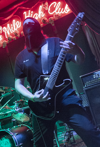 As the night starts getting late at Eli’s Mile High Club, people start flooding into the floor area from the bar to see local band Form Decay. With their short fast fast-paced set with very minimal breaks between songs, they just start their upcoming songs. Feo Berumen’s non-stop movement along the stage with several fans headbanging up close. Drummer Amar Khalasi’s non-stop jamming along with the guitarists Andre Toledo and Aakash Khalasi, making it feel more personal. The bassist Ian Deaderick also provided backup vocals. They have a new cassette tape titled Behold Horns that you can get now at shows and online.