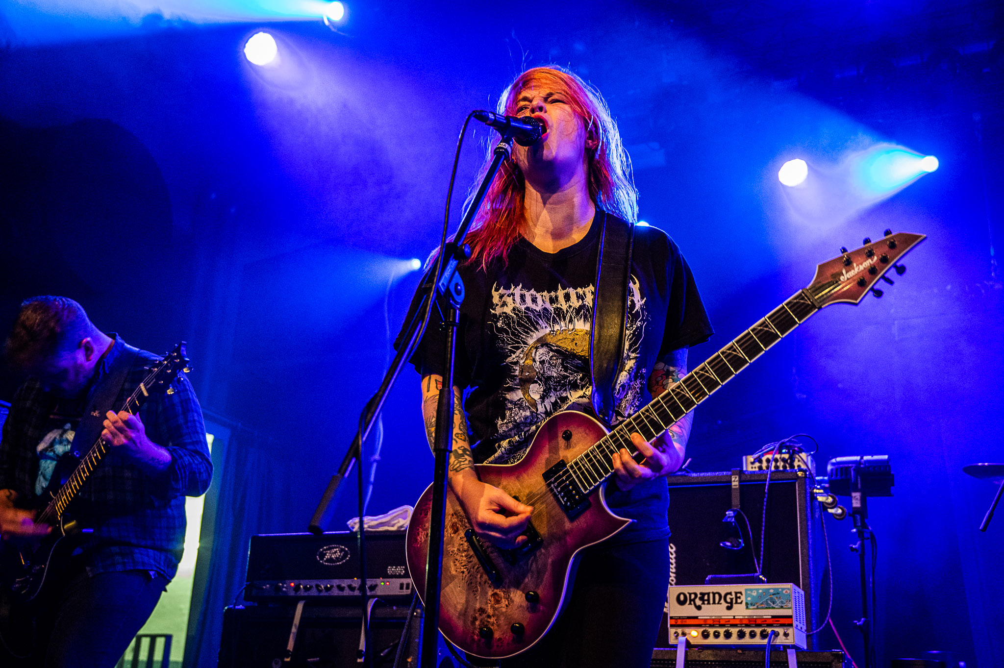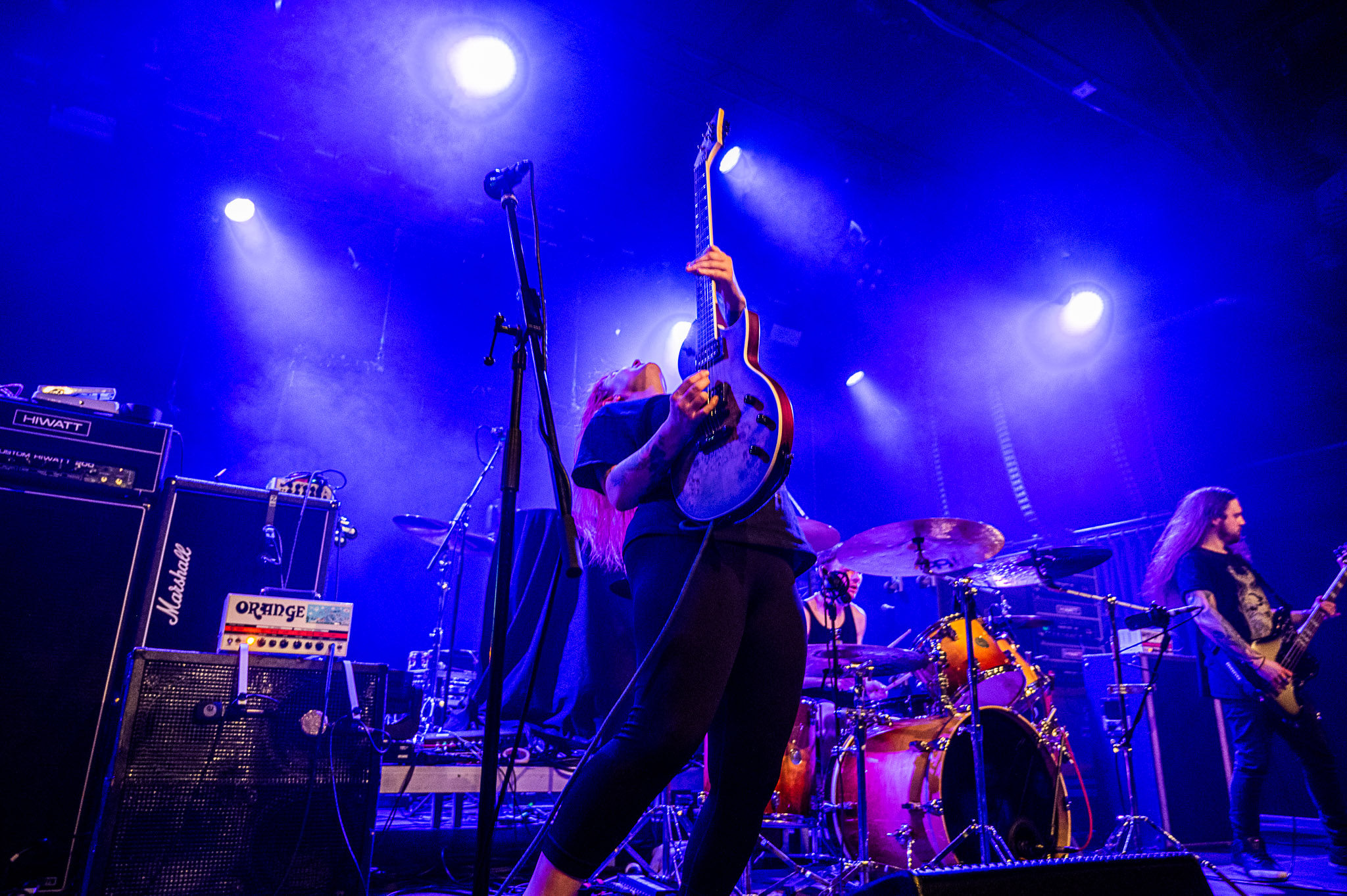 To start, coming early gave me the opportunity to learn about Svalbard, a post-Hardcore masterpiece, and also a dual vocal team, between both singers and guitarists Serena Cherry and Liam Phelan, they simply slay it on stage. Between their musical material and their live performance as seen through my photos, they’ve certainly brought it to the crowd and the crowd was eating it up. After their set, their merch table was flooded with fans and me, I got the chance to tell them how awesome they were. I also supported them by buying some merch. One of their coolest shirts is a photo of a long-haired cat with the band logo.