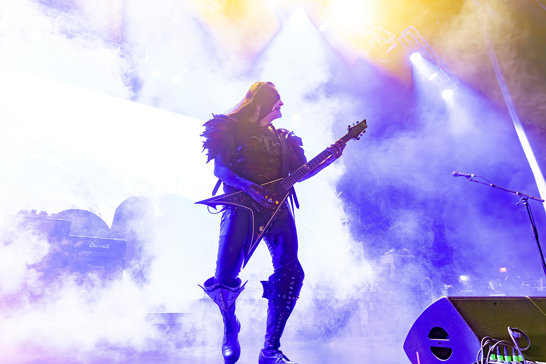 Abbath was up next, and is always a good time live. Although he has been doing his Abbath Doom Oculta old-school sets in Europe of late, this was a more general set of his excellent solo material and Immortal classics. Abbath is such a great performer, it is a bit of a shame the performers up front were bathed in darkness, with no spotlights on them. Maybe the light eluded them because… Satan! I know it’s the “troo kvlt” in them, but damn it, let us see your faces and widdly widdly jazz hands on the guitar, man! All good, the video screens started to be a factor with just cool, creepy, modest visualizer which matched the pummeling Blackened Death Metal of Abbath’s most recent solo music perfectly. A great set and a great opportunity for new fans to appreciate another legend.
