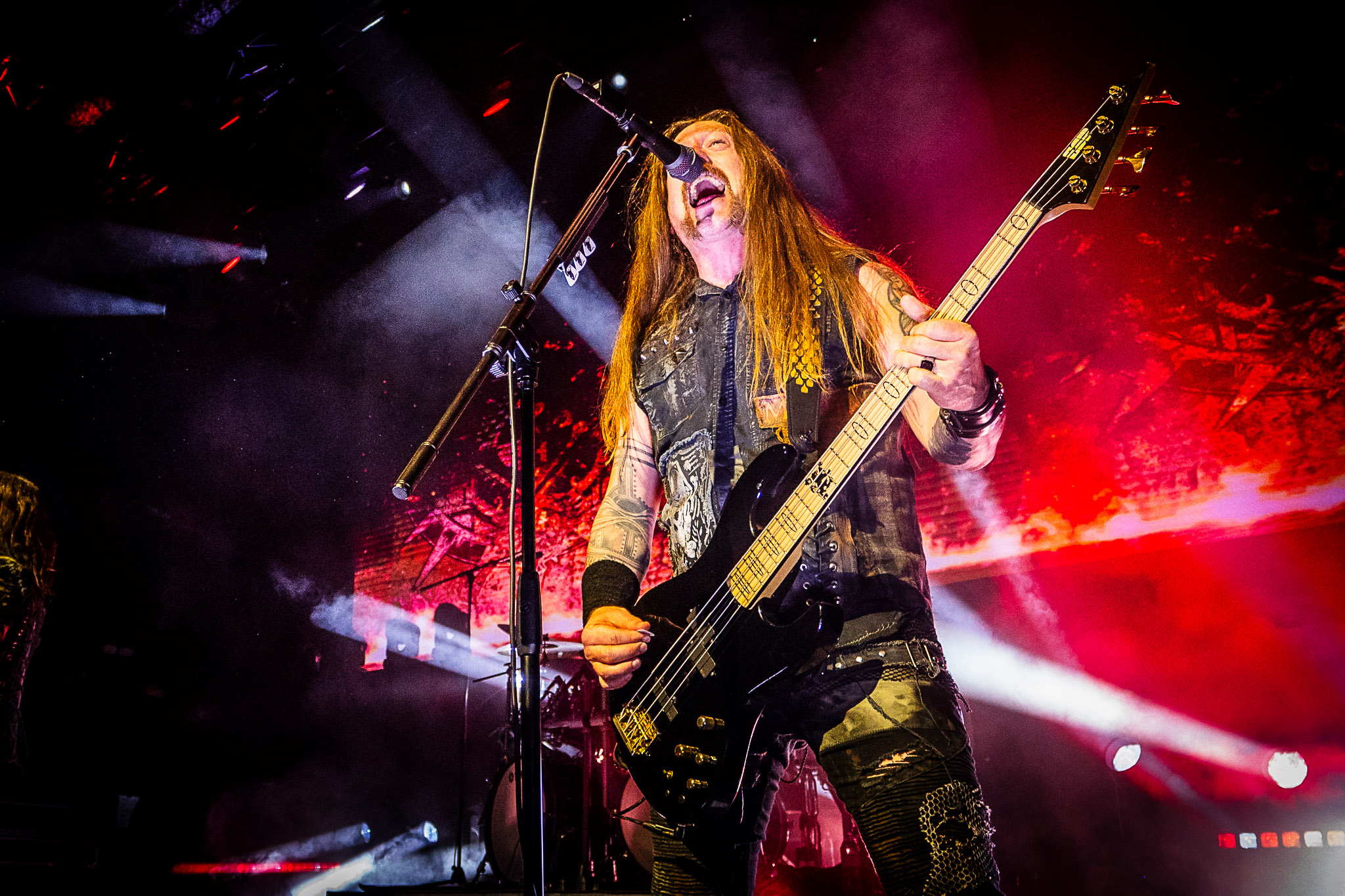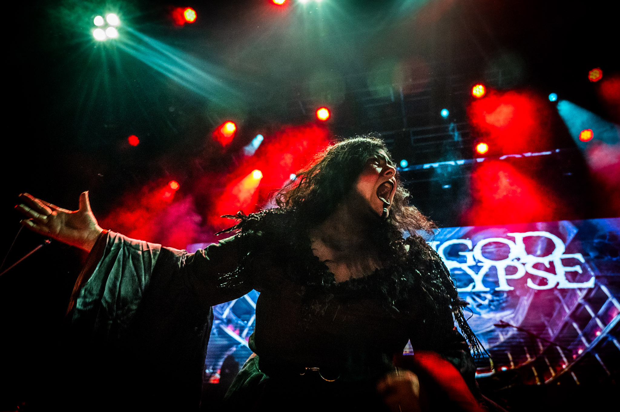 The Italian Symphonic Death metal band Fleshgod Apocalypse provided a spectacular opening set with a strong and beautiful display of Operatic Singer Veronica Bordacchini holding the Italian Flag as they opened the set with “Ode to Art (de’ Sepolcri).” Their whole set was colorful, with their lighting, stage settings, and costumes, including the piano performance. The band closed the set with the cover of Eiffel 65’s “Blue (Da Ba Dee),” with the entire metal crowd happily singing along.