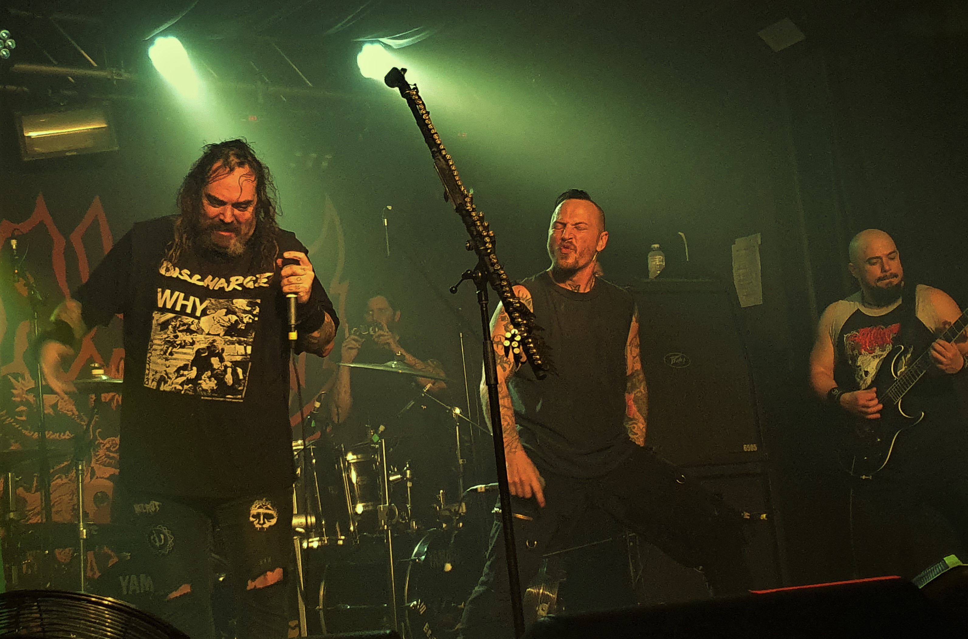 It doesn’t take long for the band to reappear, however, and with guests Jeff Janiak and Anthony “Bones” Roberts from seminal punk band Discharge, they proceed to rip the place up even further to covers of ‘Protest and Survive’ and ‘Hear Nothing, See Nothing, Say Nothing’. ‘Intro’ and a double-timed medley of ‘Beneath the Remains’, ‘Arise’, and ‘Dead Embryonic Cells’ ensures the evening ends on a sweaty, bruised and battered high.