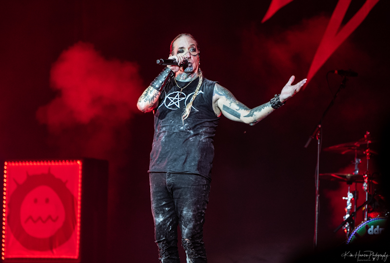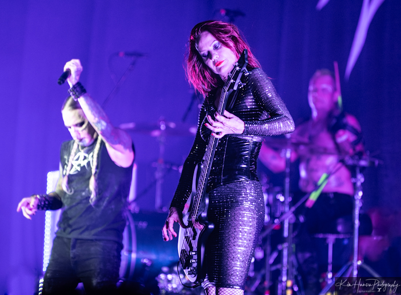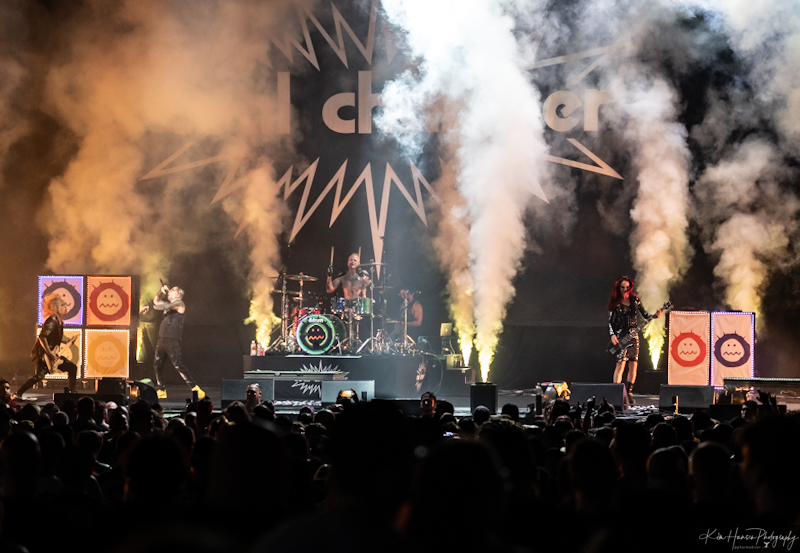 Huge fans of Wendy O Williams and the Plasmatics and taking their name from a Plasmatics song, Butcher Babies is appropriately fronted by two women, Heidi Shepherd, and Carla Harvey. They took the stage evoking Harley Quinn and Talia al Ghul and played an energetic set to the somewhat sparse crowd that was still filling in. Taking the effort to look anywhere other than at those two would produce views of a drummer Chase Brickenden flipping and twirling his sticks as he kept the beat going. Those who were there from the beginning were treated to an all-too-short set of some great metal and expert showmanship. The crowd was pumped up and ready for more.