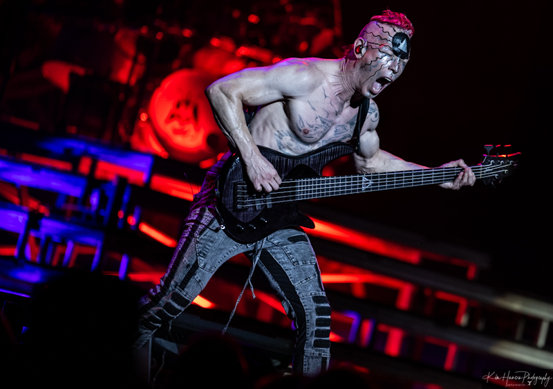 With the evening in full swing Coal Chamber took to the stage in front of a now red-tinted crowd. The band has been inactive for a few years and recently got together to play at the Sick New World festival in Las Vegas earlier this year and became a part of this tour after. This band hasn’t missed a beat and those in attendance were clearly glad to be a part of the show. Frontman and singer Dez Fafara lead the charge opening with ‘Loco’ and didn’t slow down from there. ‘Big Truck’ was a fan favorite and by the time the set ended with ‘Sway’ everyone was on their feet screaming along. All the while, bassist Nadja Peulen proved that there is a clear place for women in metal; dancing and swaying with the beat she and drummer Mike Cox set the tempo and ruled the night.