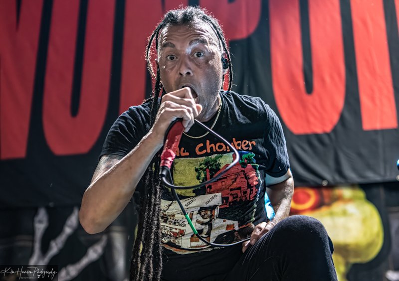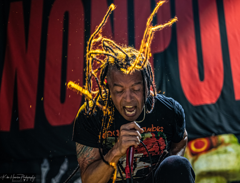 Every band is saddled with labels made up by critics and reviewers who struggle to describe the nuances of their sound. Nonpoint has been described as Nu-Metal, Alternative Metal, Hard Rock, and Rap-Rock. There might be some basis for that last one as their performance consisted of a staccato delivery of lyrics reminiscent of some early rappers. Bouncing in unison and spinning on stage, left their dreads flying in every direction and made for an energetic performance. The third song of the set, ‘A Million Watts’, accurately describes the stage show put on by Nonpoint. Lead vocalist, Elias Soriano spoke to the growing crowd between songs and was clearly enjoying himself.