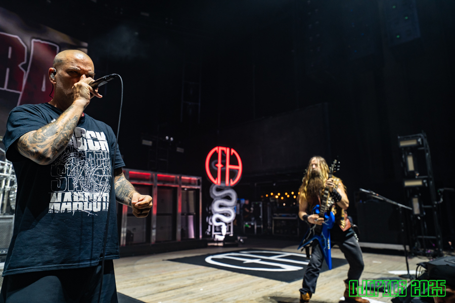 But this night belonged to Pantera. This was also my first time seeing them since 2001 on the Extreme Steel tour. When they rolled out the intro and banner dropped, the place ignited into a fire-filled stage of “Hellbound.”. Phil Anselmo commanded the stage with raw presence, Rex was Rex, it felt solid. From there, it was a brutal, precision-delivered setlist that stomped through the classics: “Goddamn Electric,” with a surprise on the ending solo, Phil joined on guitar to take it home! Hearing Charlie Benante (Anthrax, The Violent Hour) and Zakk Wylde (Black Label Society/Zakk Sabbath) play “Becoming,” and “I’m Broken,” made it click in my head why they were chosen. Before ending the main set with “Cowboys From Hell.”