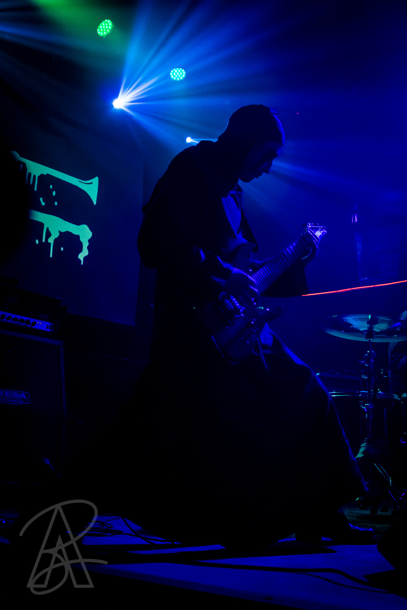 First up was Begrime Exemious, a blackened death metal group from Edmonton, Alberta, Canada playing to a typical early Tuesday night crowd of committed music fans. From the start, I felt a distinct absence of the key energy needed to engage a beleaguered crowd trudging past the beginnings of the week. However, their blend of piercing black metal shrieks, signature death metal growls and riffs, and classic thrash influence, created a deliciously doomy experience and after a few songs, the band started to find their groove with the crowd. Begrime Exemious was definitely a more raw, primal version of your typical blackened death metal sound and you can’t miss the old-school vibe the band gives off. By the end of their set, I was finally in full swing with the energy, but alas, it was time to wrap it up. Overall, they were an enjoyable listen, but their stage presence took some warming up.