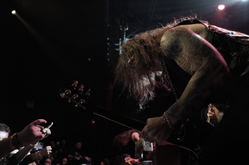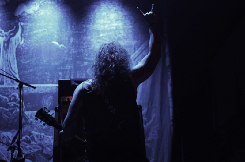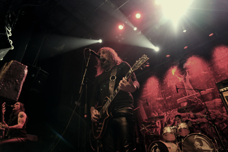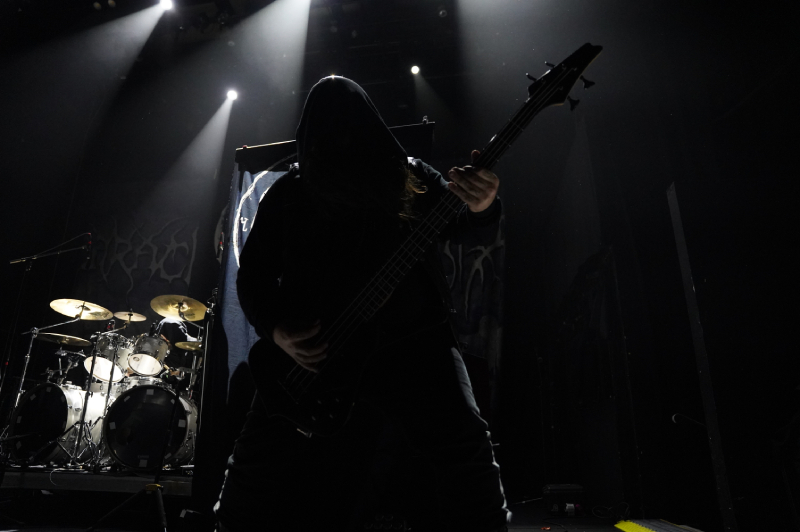 With the sold-out venue packed like (willful) sardines, the legendary Greek four-piece that is Rotting Christ took the stage. With the three frontmen’s backs turned to us, drummer Themis Tolis pounded a somber, tribalistic beat to signal the opening anthem, 666. Right on queue, the song burst into wrathful instrumentation and booming vocals by veteran vocalist Sakis Tolis. The guitarist and bassist thrashed their long-haired heads wildly, sending the crowd into equal fervor. Their whole set provided unrelenting energy in the form of fan favorites like Fire, God and Fear, and Non Serviam. I will say as much as I enjoy Saint Vitus Bar, seeing this band at Gramercy was a major step up for them; the enhanced sound, lighting, and overall space lent much to their grandiose and occult vibes.