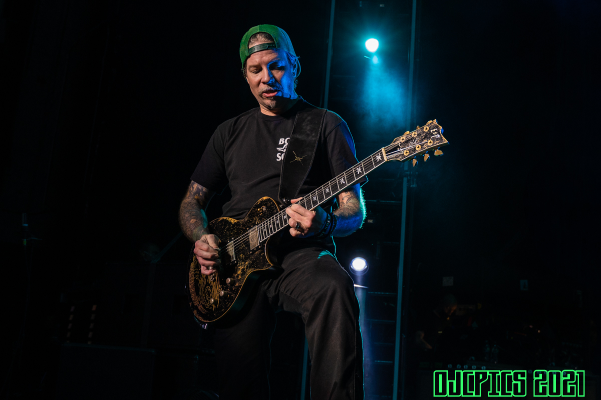 I rolled out with my recently new friends made in my new town and we had an awesome ride to the venue, with a great convo, followed by beers and epic sushi in Walnut Creek. Every metal show from now on should be preceded by beers and sushi. The Concord Pavilion is a cool amphitheater about an hour and a half west of San Francisco. At heart all these shows in these types of venues are alike in a way. Usually, they have a good set up and the sound is often at least solid. On this day, the only flaws in the experience was the parking and the vaccine checks which were both lacking considering the state mandate that went into effect that week There seemed to be a lot of confusion even among the staff where to let us park. Finally we were able to park, but Hatebreed was already playing when we got in the door in spite of our efforts to be early. Too bad since Jamey Jasta and crew are always great live. People in the immediate seats around me were first timers and new fans who said they loved what the veteran band from New Haven put down.