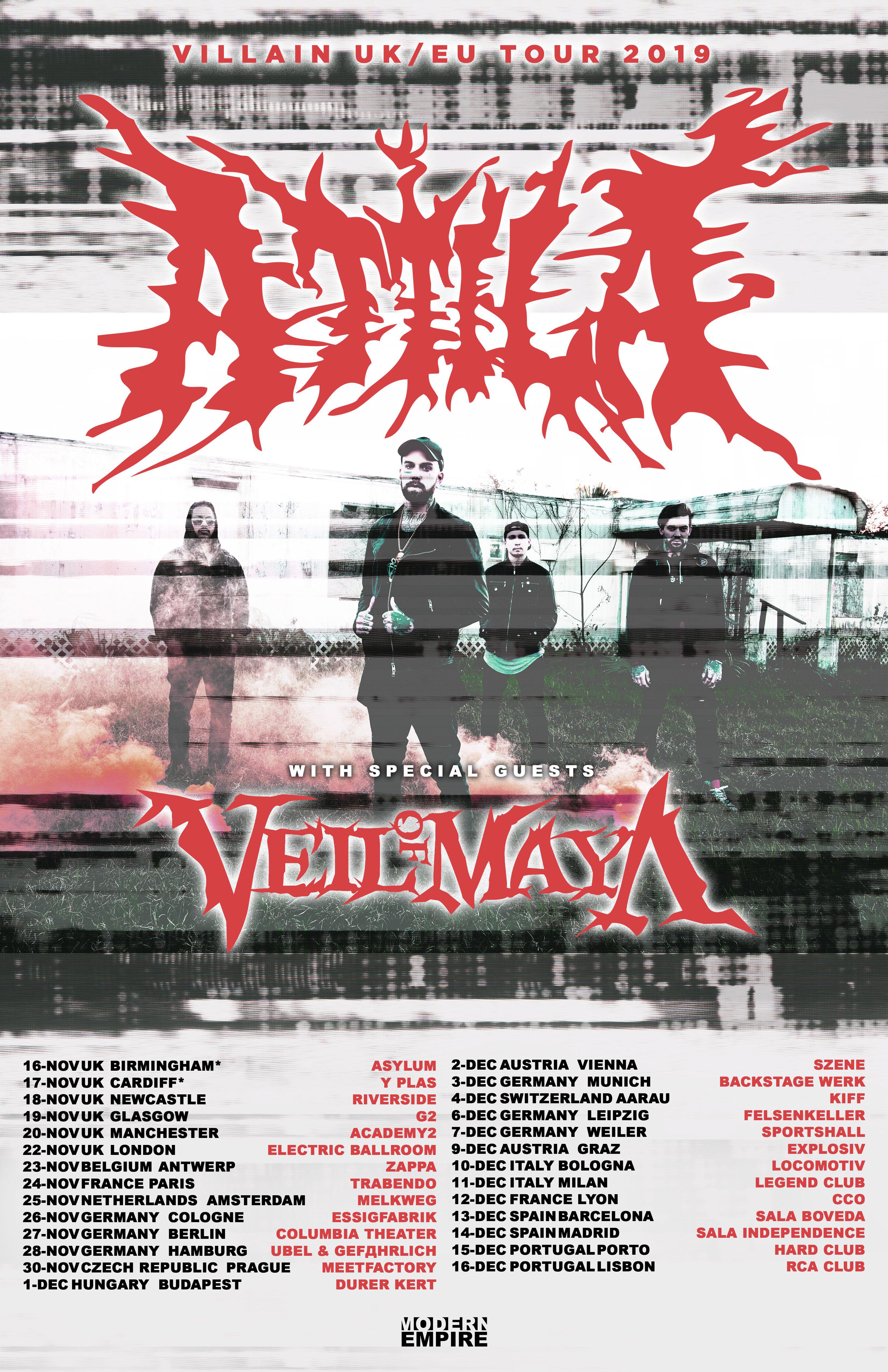 Atilla is currently on tour in Russia and are gearing up to smash the UK and Europe again starting this coming weekend! The band is on tour behind their album Villain, released on their own label earlier in 2019. Direct support on all dates to come from Veil of Maya. You can win a pair (1 winner) of tickets to see the show live in London, at the legendary Electric Ballroom on 22nd of November. Ages 14+ admitted only. 14s to 16s must be accompanied by an adult. The contest ends in one week! To enter, just find the contest post on Facebook and drop a comment with your favorite Attila song! We’ll announce the winner on the 19th!