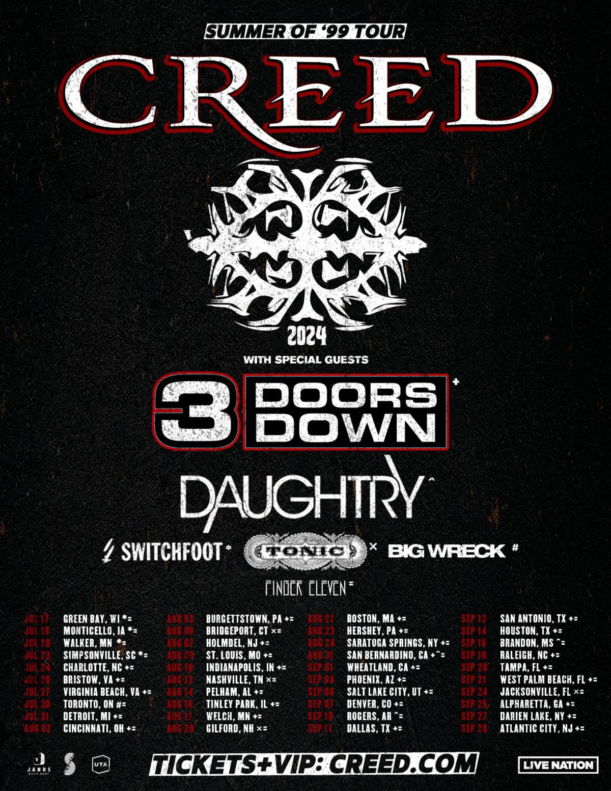 CREED: SUMMER OF ‘99 TOUR DATES: