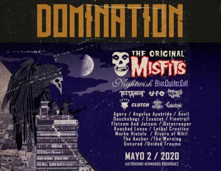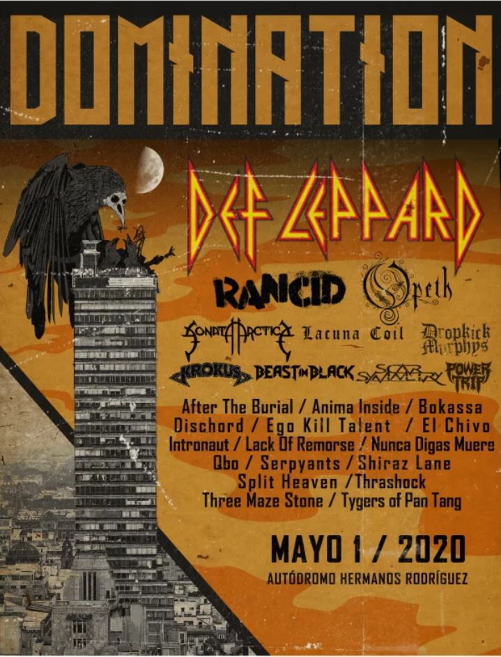Mexico’s premier springtime Metal and Punk festival, Domination Festival has announced its 2020 lineup. Def Leppard, Misfits, Nightwish, Rancid, Opeth, BOC, UFO, Testament, Lacuna Coil, Dropkick Murphys and more are set for the festivals that takes place May 1-2 at the Autódromo Hermanos Rodríguez in Mexico City, Mexico. More bands are expected to be announced soon. Tickets are on sale from https://www.ticketmaster.mx