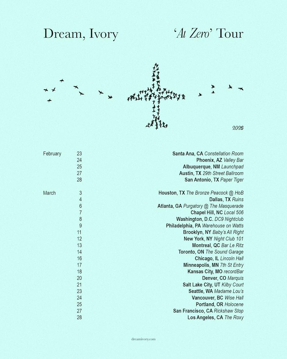 After wrapping up a US tour supporting breakout shoegaze star Wisp this past August, Dream, Ivory will embark on their own headline run early next year, kicking off in February at Santa Ana’s Constellation Room, and hitting Austin, Atlanta, DC, Philadelphia, New York, Chicago, Seattle, Portland, San Francisco, Los Angeles and more.