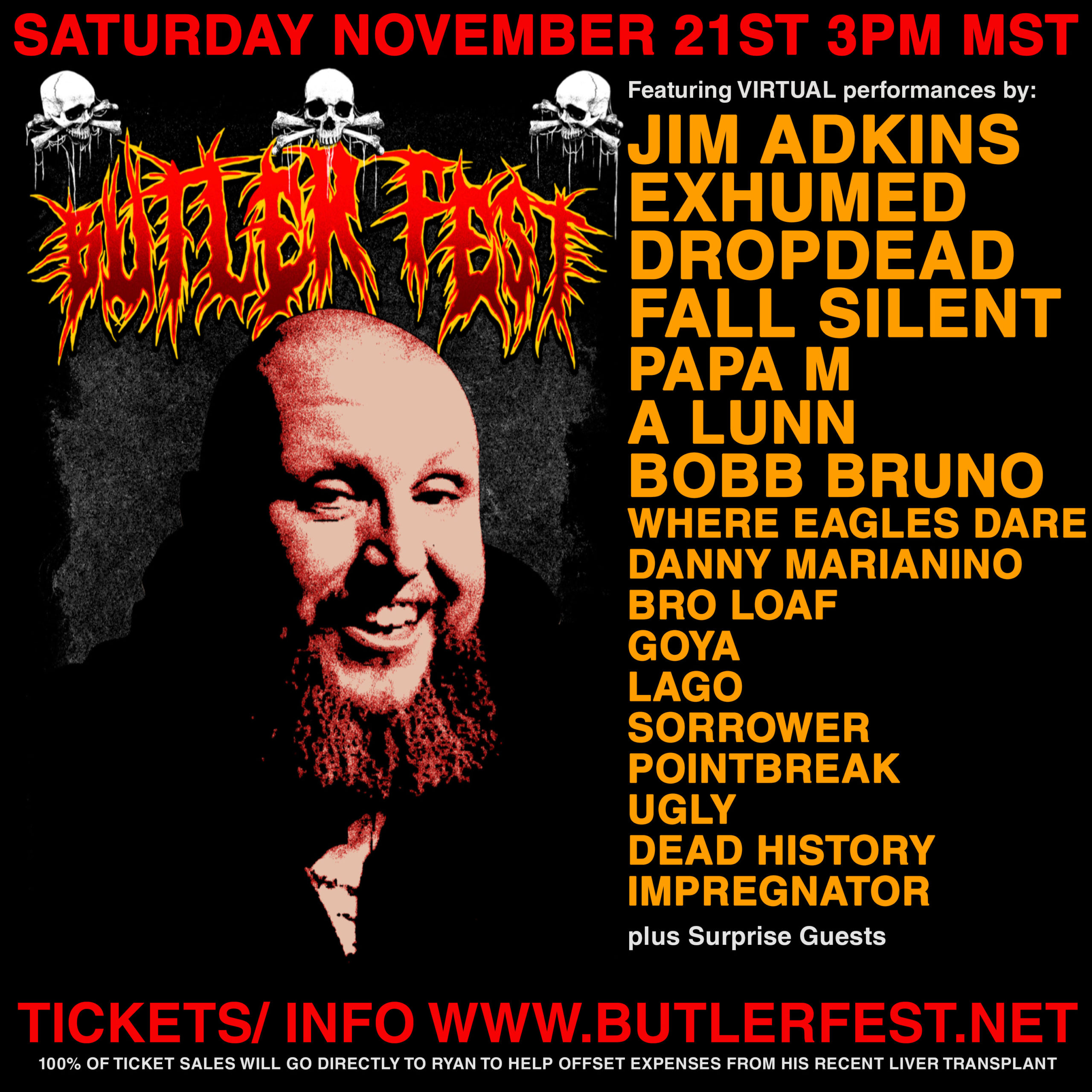 Dropdead, Jimmy Eat World, Panopticon, Best Coast, Goya, members of Landmine Marathon and their related bands, and many more will perform at Butler Fest this Saturday, November 21st, a virtual fest to benefit Landmine Marathon guitarist Ryan Butler and raise funds for expenses related to his recent liver transplant. Tickets are available at the link below. Your ticket purchase will gain you access to the full event the day of the initial stream and On-Demand (meaning, you can watch this later). The full lineup for Butler Fest can be seen below.