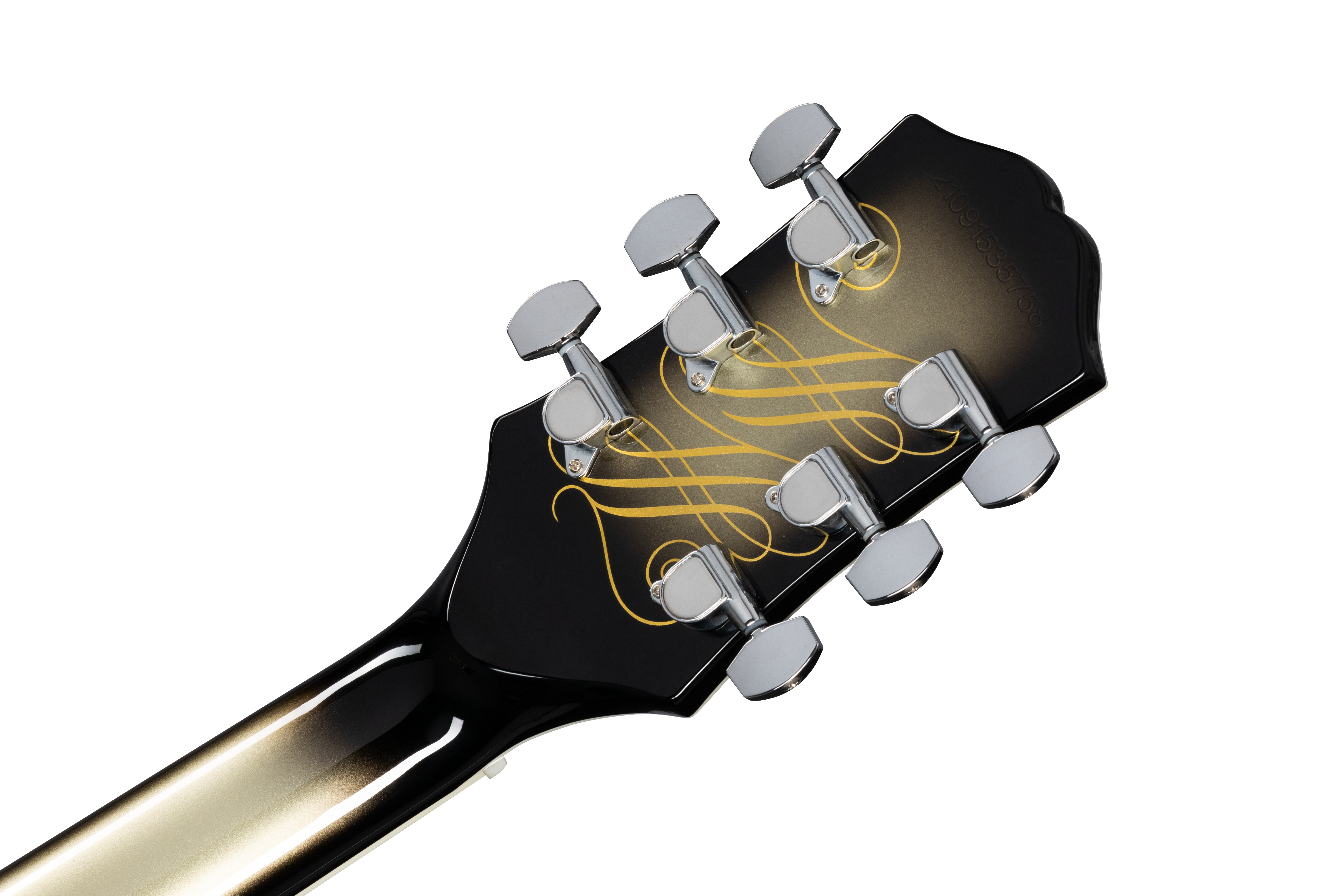 The Epiphone Adam Jones Art Collection consists of seven, Silverburst Les Paul™ Custom models, each featuring reproductions of different works of fine art on the back. Adam curated all of the featured artwork, and selected five distinguished artists Mark Ryden, Frank Frazetta, Julie Heffernan, Korin Faught, and Ernst Fuchs for the collection; additional artwork designed by artist Korin Faught, adorns the back of the headstock of each model. Only 800 guitars of each model from this extremely limited edition run will be produced.