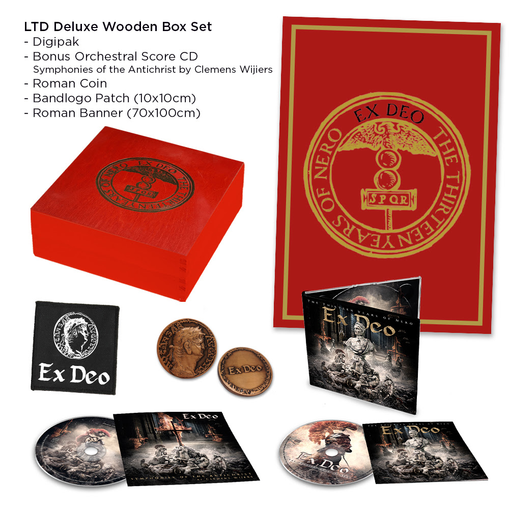 -Deluxe Wooden Box Edition: Digipack, Bonus Orchestral CD, Roman Coin, Band Logo Patch and Roman Banner (Napalm mailorder only – limited to 500)