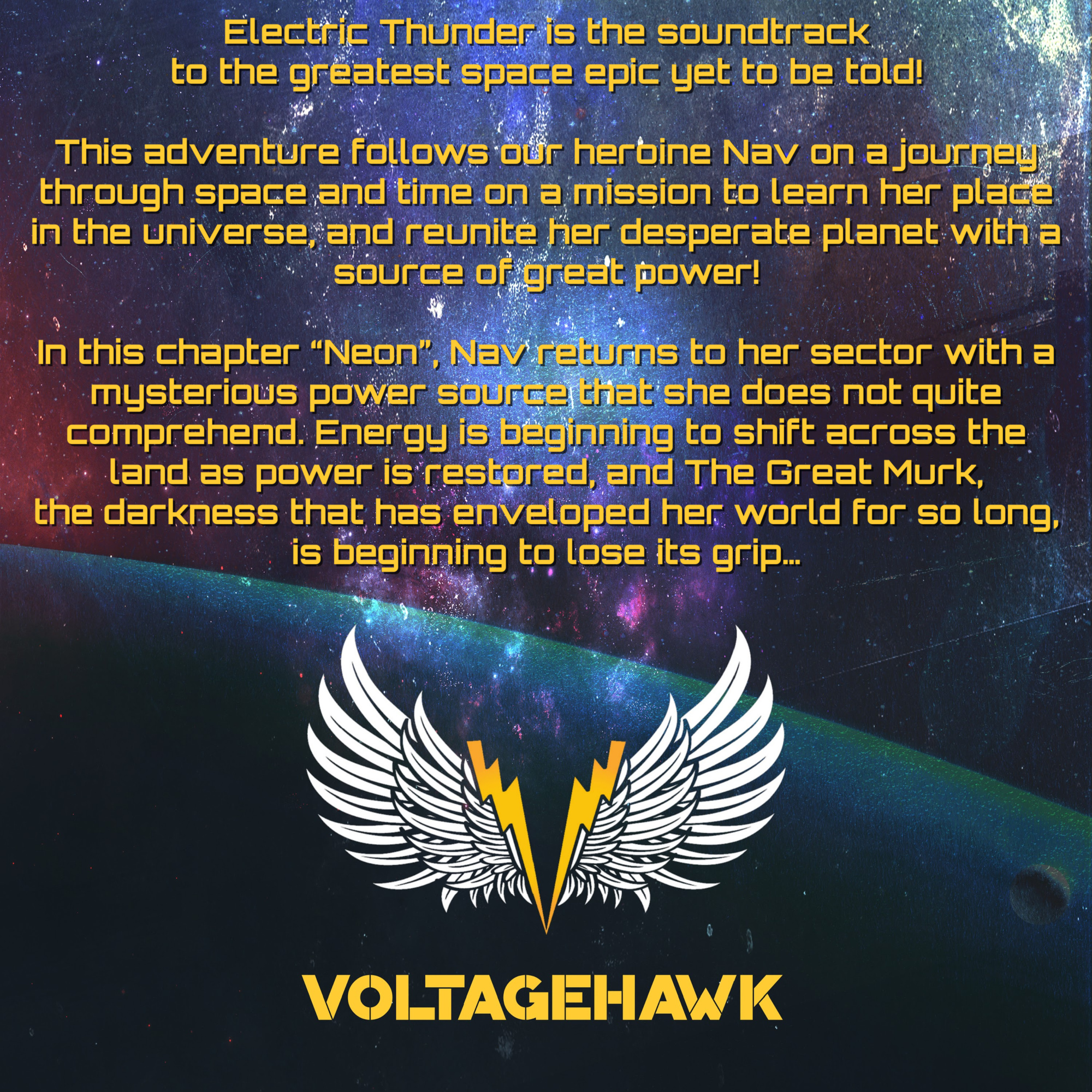 Continuing on its mission to fuse melodic Nashville songwriting sensibilities with raw Rock and Roll power, Voltagehawk is excited to release its debut full-length 13 song space epic Electric Thunder!