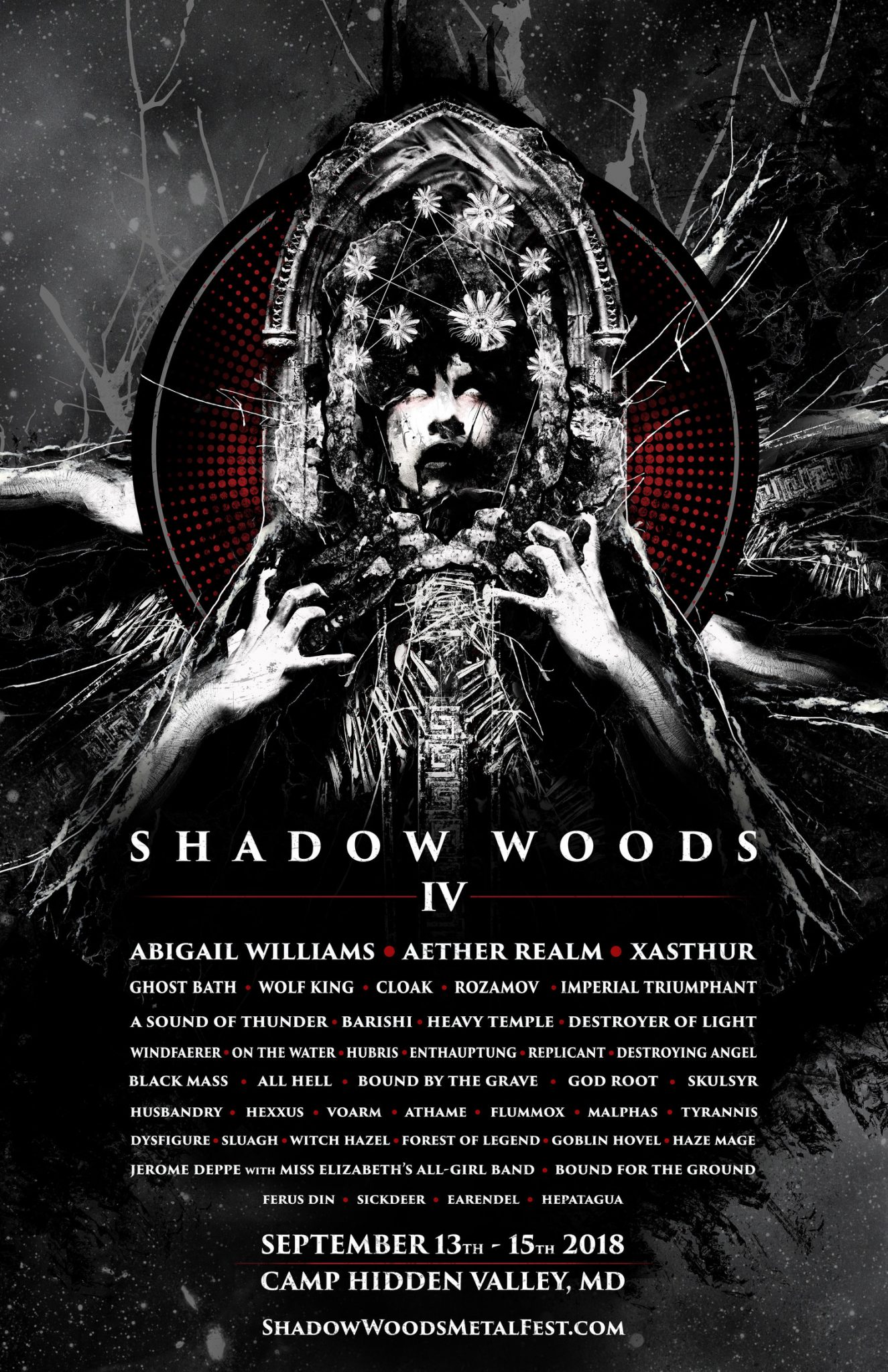 Today is the day! America’s best underground brutal, blackened underground music festival, Shadow Woods Metal Fest begins today. Although a few bands have been last minute cancellations due to Hurrican Florence and Ghost Bath canceled their entire tour due to van troubles, the festival is 100%taking place with only rain expected at Camp Hidden Valley, in Whitehall Maryland. The lineup includes Abigail Williams, Xasthur, Aether Realm, Rozamov, Heavy Temple, A Sound of Thunder, Barishi, Destroyer of Light, Husbandry, God Root, Hepatagua, Cloak, Wolvhammer, Imperial Triumphant, Black Mass, and many more. Tickets are still available at the gate for you late deciders.
