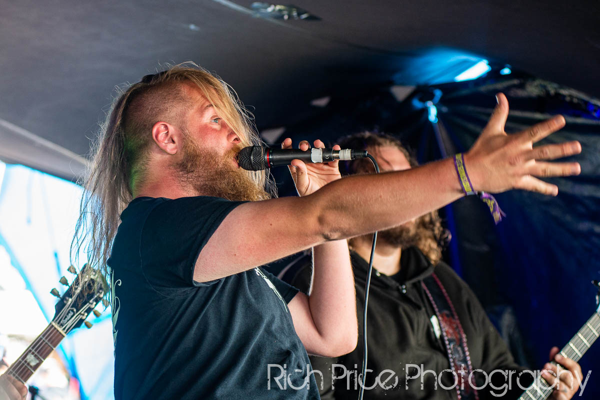 After tents are erected and the first or tenth beers of the weekend have been consumed, people begin gathering inside the Sophie Lancaster Tent to watch the first bands of the weekend. The doomy Barbarian Hermit, and the hard rock groove of Blind River help kick things off nicely, but both play second fiddle to the supremely silly Footprints in the Custard. Arriving on stage to the theme music from Thomas the Tank Engine, the catchy ‘Space Force’ goes down well with a fully costumed Chewbacca stood in the crowd, before the band’s less than svelte guitarist strips down to a lime green mankini. I’d say it was one of the most disturbing sights of the weekend, but this is Bloodstock. It would struggle to make the Top 5.