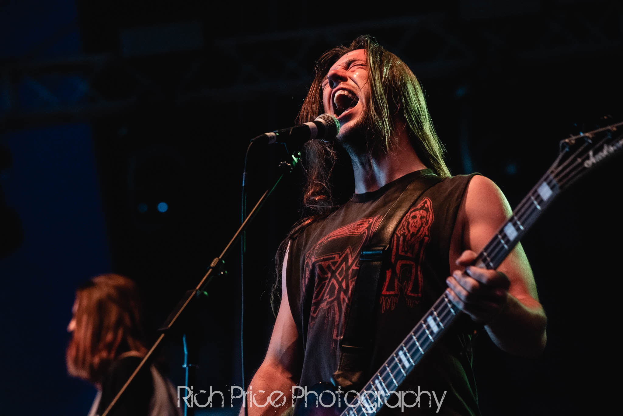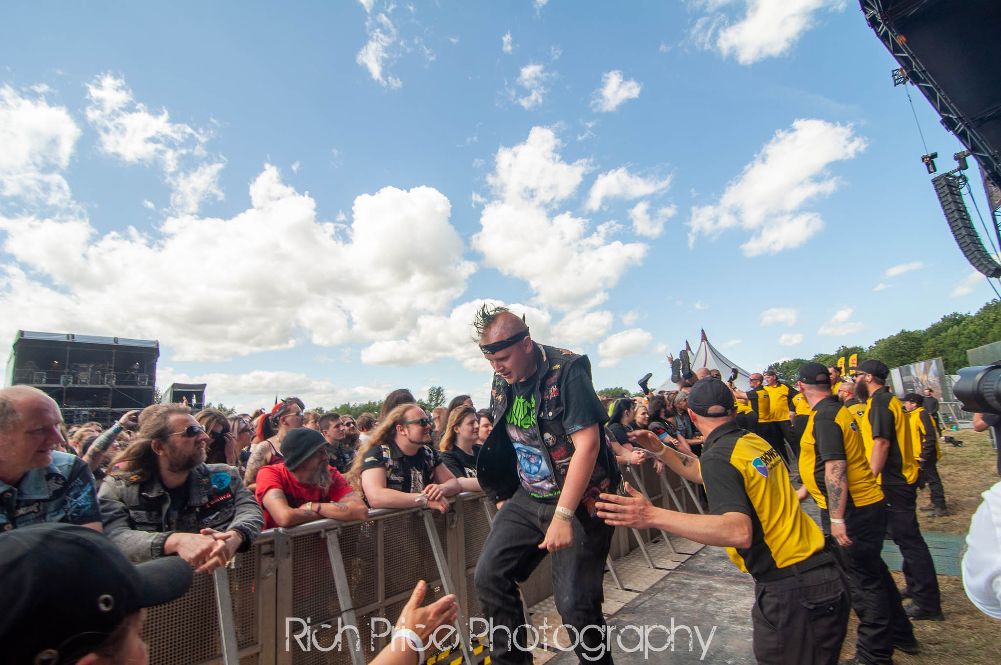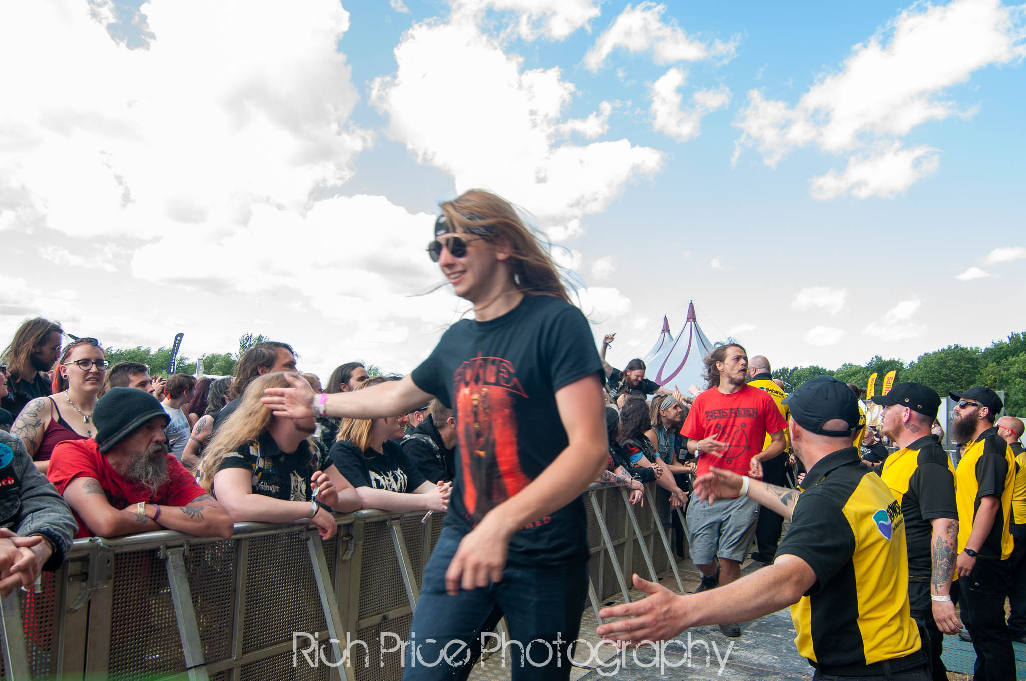 Being Friday means it’s time for the Ronnie James Dio Stage to come wading in with elbows flying and what better way to start than with Manchester death metal bastards Foetal Juice who kick off in the noisiest, dribbliest way possible. Despite a few technical issues, Berkshire’s finest, Divine Chaos keep heads banging with their Slayer-infused riffs while northern thrashers Acid Reign are also beset by gremlins, frontman/stand-up comedian Howard Smith taking control and keeping the crowd laughing with ease. Problems aside, the band storm through the likes of ‘Goddess’, ‘Humanoia’, ‘Creative Restraint’, ‘The New Low’ and ode to Norman Bates, ‘Motherly Love’.