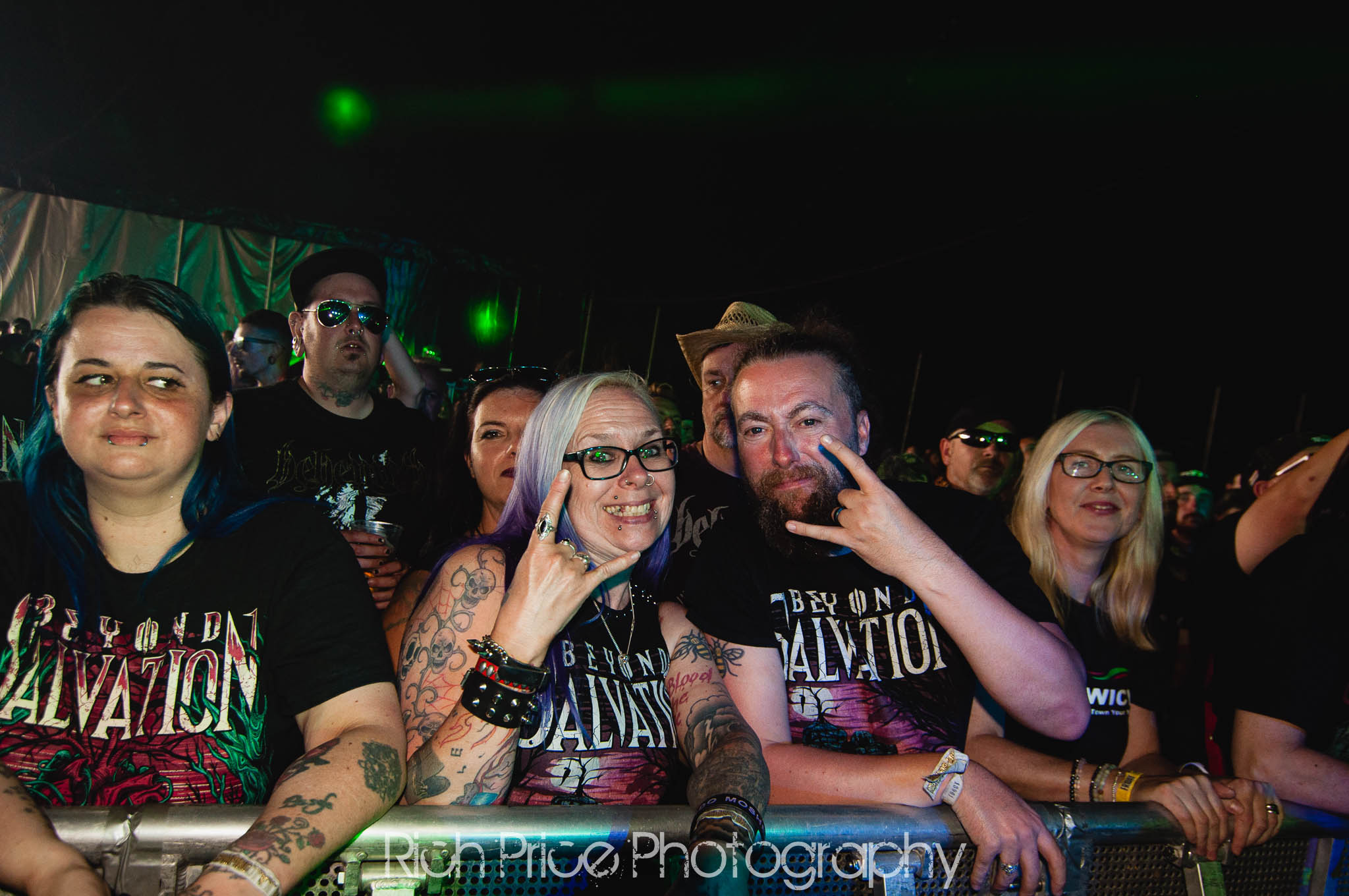 With energy levels and festival excitement still high, quality acts such as Welsh black metallers Agrona, Norfolk thrashers Shrapnel, Liverpool doom/sludge merchants Conan, and a reinvigorated and retooled Evile invade the Sophie Lancaster Stage, decimating all before them. Birmingham grindcore legends Napalm Death complete the day’s entertainment with a reliably devastating set, the crowd gathered outside the tent almost as huge as the one inside.