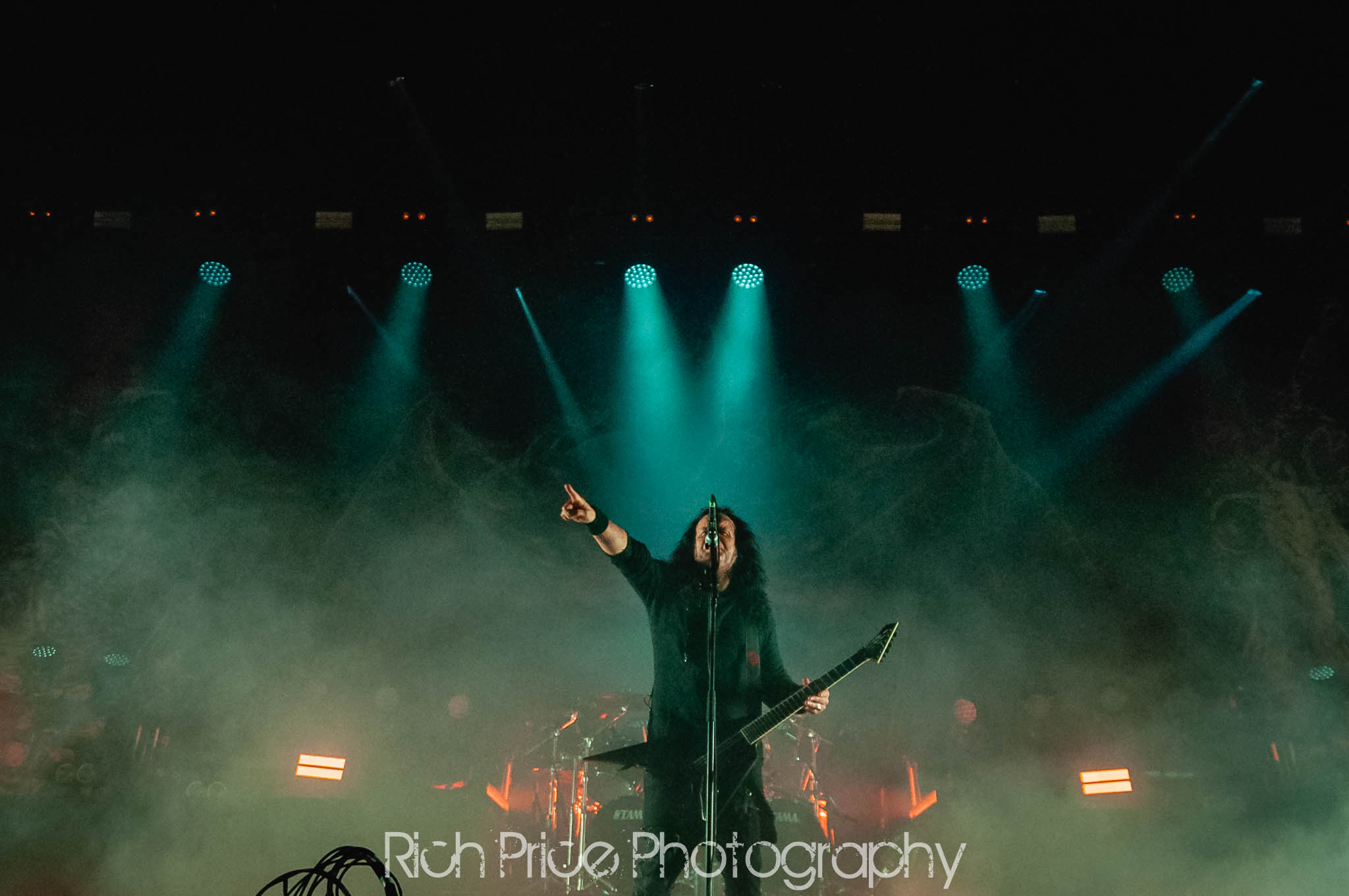 Cradle of Filth may remain as divisive as ever but rise imperiously above their naysayers, tearing through their main support slot with tracks such as ‘Nymphetamine (Fix)’, ‘Lilith Immaculate’, ‘Cruelty Brought Thee Orchids’, ‘Heartbreak and Seance’ and ‘Her Ghost in the Fog’ before climaxing with a vicious ‘From the Cradle to Enslave’. New song ‘Crawling King Chaos’ sounds nothing short of immense, there’s so much fire during opener ‘Cthulhu Dawn’ that photographers are instructed to stay away from the pit, and new member Anabelle Iratni, fresh from vocalist Dani Filth‘s other band Devilment performs impressively on keys and backing vocals.