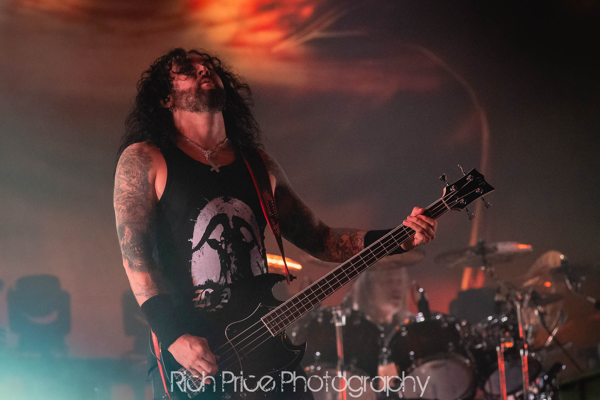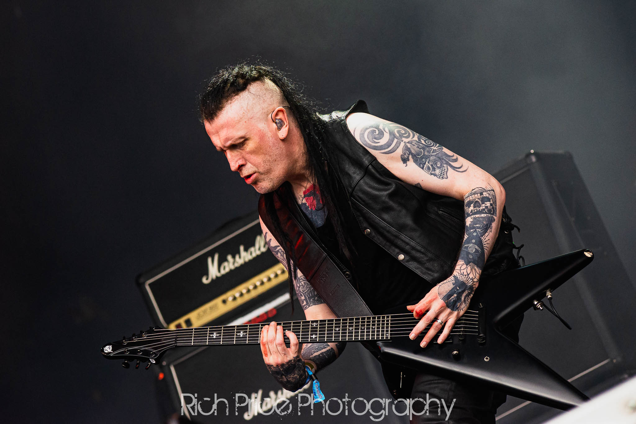 A blistering set full of old standards and new favourites, Mille teases and commands the crowd to engage in walls of death, circle pits, and at regular points to basically outright kill each other. ‘Violent Revolution’, ‘Phobia’, the strikingly apt ‘Terrible Certainty’, ‘People of the Lie’, ‘Pleasure to Kill’, ‘Extreme Aggression’ and ‘Endless Pain’ sit more than comfortably next to the likes of newer cuts like ‘Satan is Real’, ‘Phantom Antichrist’, ‘666 – World Divided’, ‘Hordes of Chaos’, ‘Hail to the Hordes’ and ‘Enemy of God’. It wouldn’t be a Kreator show without Mille raising the ‘Flag of Hate’ and after a year away from live music, it’s great to see him doing it again. Opinion is divided on the choice to have Dani Filth join the band onstage for ‘Betrayer’ but everyone stands united when bassist Frédéric Leclercq dedicates ‘Fallen Brother’ to his recently departed friend and Sinsaenum bandmate Joey Jordison (along with Neil Peart, Riley Gale, Alexi Laiho, and LG Petrov). A poignant and sombre moment in a ninety minute masterclass in thrashing brutality.