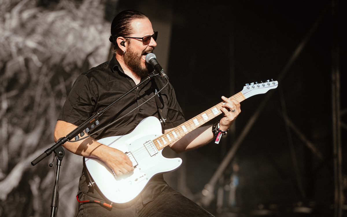 Italian Alt-Goth crew Lacuna Coil avoid playing a nostalgia show by including five songs from their latest album. A nice move although it’s clear that “Heaven’s a Lie” and Depeche Mode cover “Enjoy the Silence” are still their most popular tracks. Dressed entirely in white (and with half his face painted the same) High Parasite frontman Aaron Stainthorpe looks quite a sight. Boasting monster riffs, catchy choruses, and fierce vocals, the new project from the former My Dying Bride frontman impresses everyone in the Sophie tent on songs such as “Parasite,” “Let it Fail,” and “Cold.”