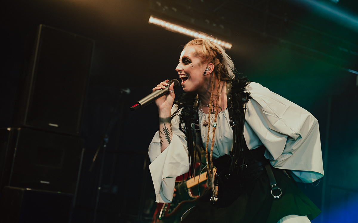 After the quite brilliant Shrapnel smash it on the main stage, it’s time to visit the merch stand. Thursday had already seen queues a mile long, but this is nothing compared to today. So, after giving up and turning my attention back to the main stage, Canterbury doomsters Famyne bring a Black Sabbath vibe to proceedings, songs like “Tower,” “Solid Earth” and “Dreamweaver” grabbing the imaginations of many while Lock Horns deliver heavy as fuck Irish prog metal to the Sophie tent with brutal precision. The doom continues on the main stage with Danish act Konvent, singer Rikke Emilie List somehow managing to produce huge roars while barely even opening her mouth.