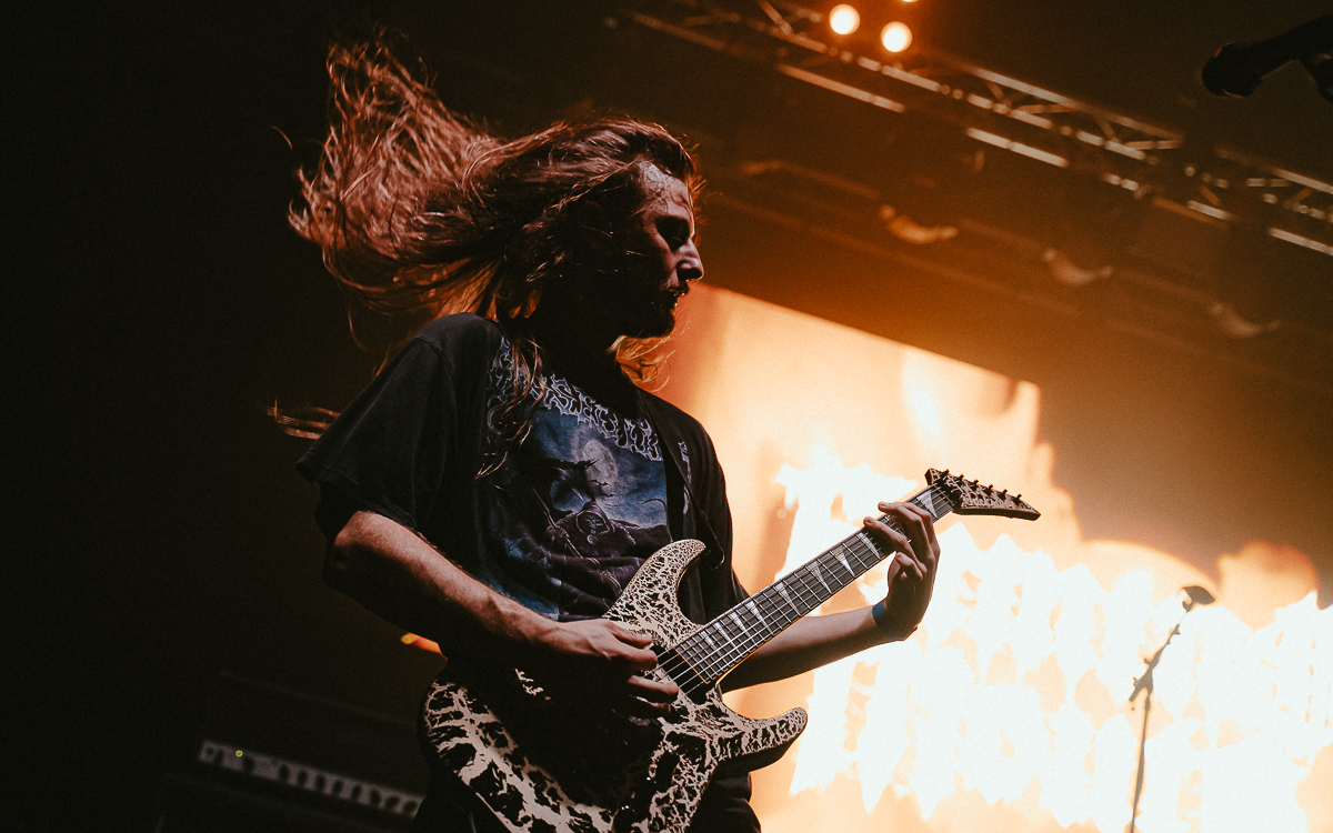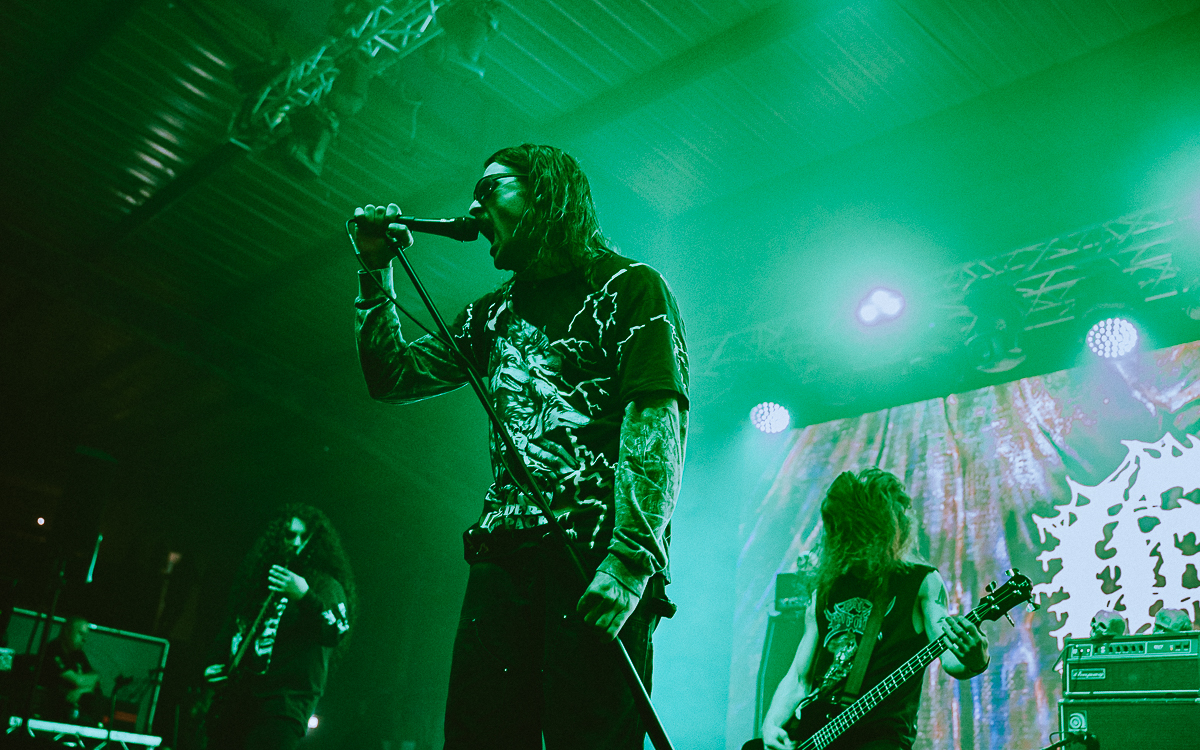 Gatecreeper, from Phoenix, Arizona are up next, and they really get the crowd moving. Fast, frantic and groovy death metal riffs are augmented by Chase “Hellahammer” Mason’s furious shouts.