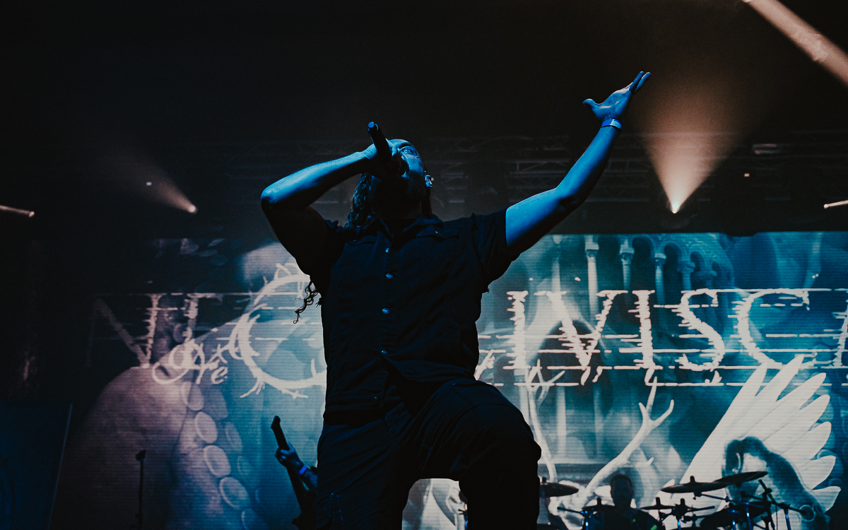 Bleeding Through (playing This Is Love, This Is Murderous) work the audience into a frenzy of moshing and crowdsurfing as their unstoppably powerful metalcore is thrown forth from the stage. Dizzyingly fast and furious segments trade places with ultra-heavy beatdowns throughout a frantically energetic set.