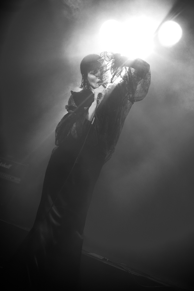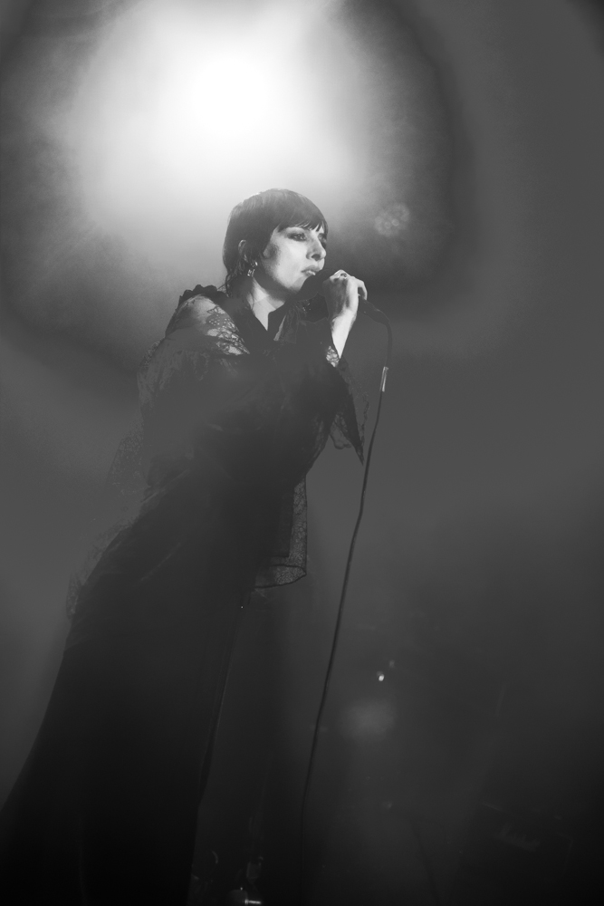 Wandering back to the smaller room, it was surprisingly quiet at the fest so far. It’s early so maybe the crowd will pick up as the day continues. Shemer are delightfully old school Goth, with sad melancholic guitars over a slow pulsing electronic backing, and a hypnotic vocalist who dances and sings very reminiscent of Siouxie and the banshees, and even boy harsher at times. Delightful to see some of this old school goth stiff resurface, and done so well.