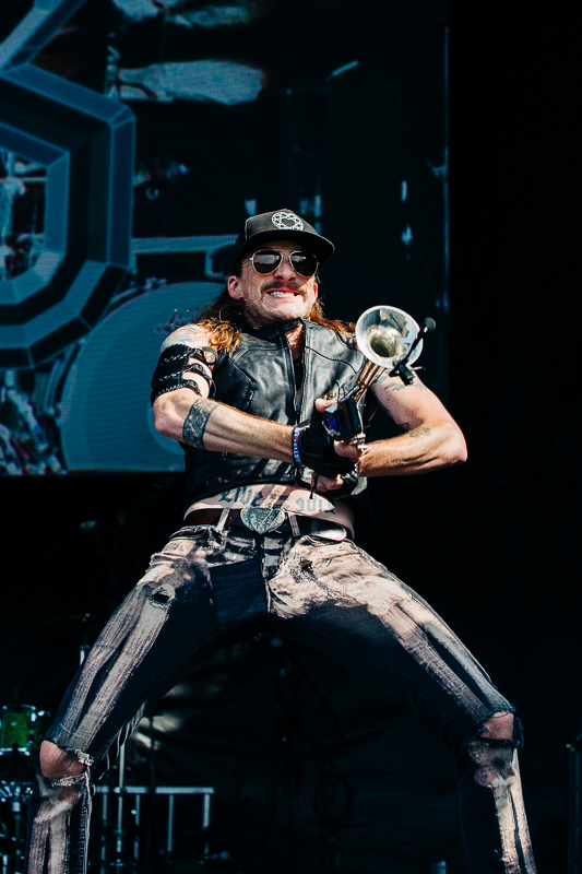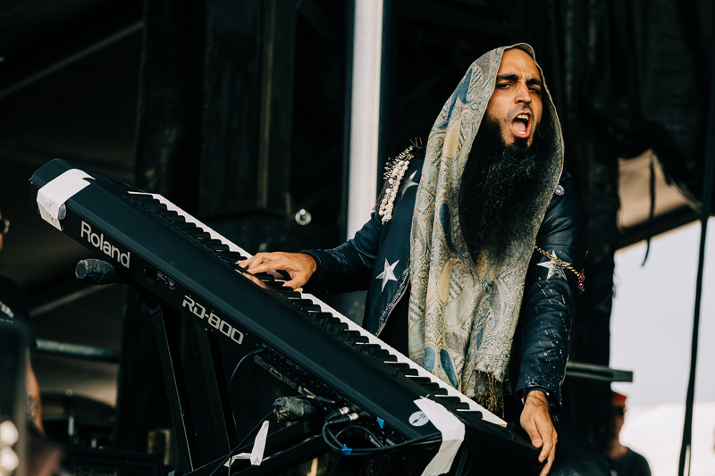 Next up, a recommended band from a friend of mine, the ever so lovely Foxy Shazam. A Midwest band from Cincinnati, Ohio reappearing once again for today’s festival. Quite a few people turned out for Foxy Shazam, and they were all good company. They put on such a stellar performance, starting with their opening anthem “Unstoppable” to really get the blood flowing. They kept the ball rolling with fan favorite “Welcome To the Church of Rock and Roll”. And finally finishing it off with “Bombs Away” and “No, Don’t Shoot”. The singer had to have been a band director in his past life with how he controlled the crowd, if you want an immersive show, you must check them out next time they’re in town.