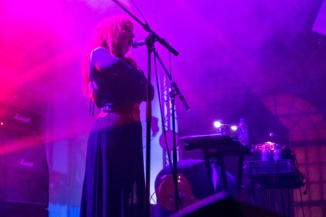 On Thursday the festival proper started, though not quite as early as the following days, I do make my way to the venue in time as the first act on the main stage is the Bismuth + Vile Creature commissioned piece A Hymn Of Loss And Hope that is a holdover from the 2020 lineup that got canceled. The Trans Atlantic cooperation refreshed their set in all might before the festival proper, and though some rust can be detected in the early mournful guitar tones, the dual screams of Bismuth’s Tanya Byrne and Vile Creature’s KW remind of the demon army screams on the latest Doom soundtrack. This combined with primal drums, thundering bass and lugging guitar riffs creates a wonderfully visceral experience of music I have sorely missed in the dark day of the pandemic. Feeling the notes through my body and being is an experience I relished. A fragile, piano and clean vocals interlude in the middle where the wavers in Tanya’s voice add to the emotion rather than detract adds variety before plunging back into the thrashing seas of heavy. A beautiful piece that has thankfully been recorded and saved for posterity.