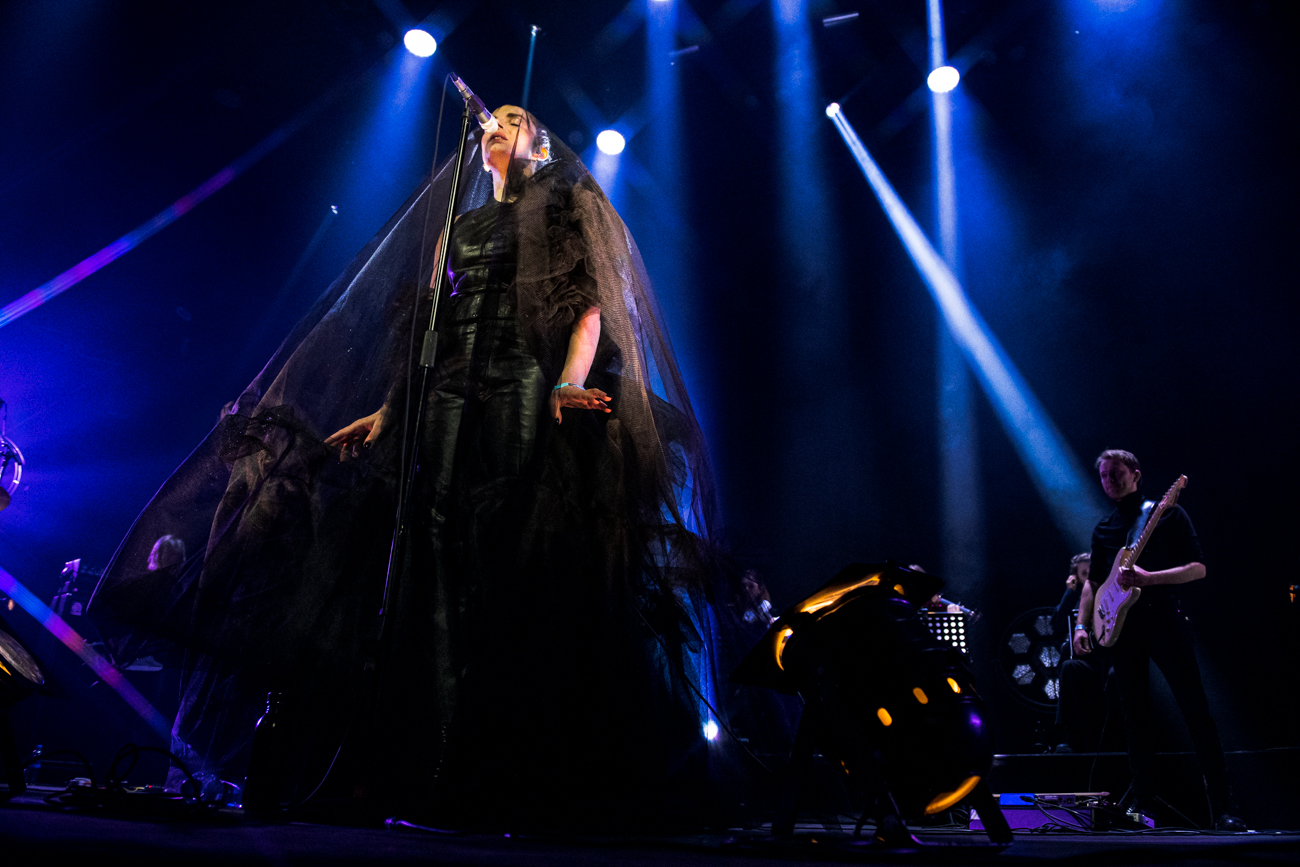 Final Light, the title of the commissioned collaboration between Pertubator’s James Kent and Cult of Luna’s Johannes Persson proves that in order to have a lot of impact one does not need a bassist or a lot of members on stage. A bass synth sound that begs the use of the term BWAAHM, and reminds me of the synths used in disaster movie trailers but better, plastered us all to the walls of the 013 main room, while layers of landscapey guitar and higher synth twirled around each other. Double drummers punctuate the heaving swirling mass, as Persson’s vocals gravely scream in anger and strobes occasionally blind us. The swirling writhing black and white visuals perfectly accompanying the mesmerizing force of nature of a piece. Definitely one of my personal highlights.