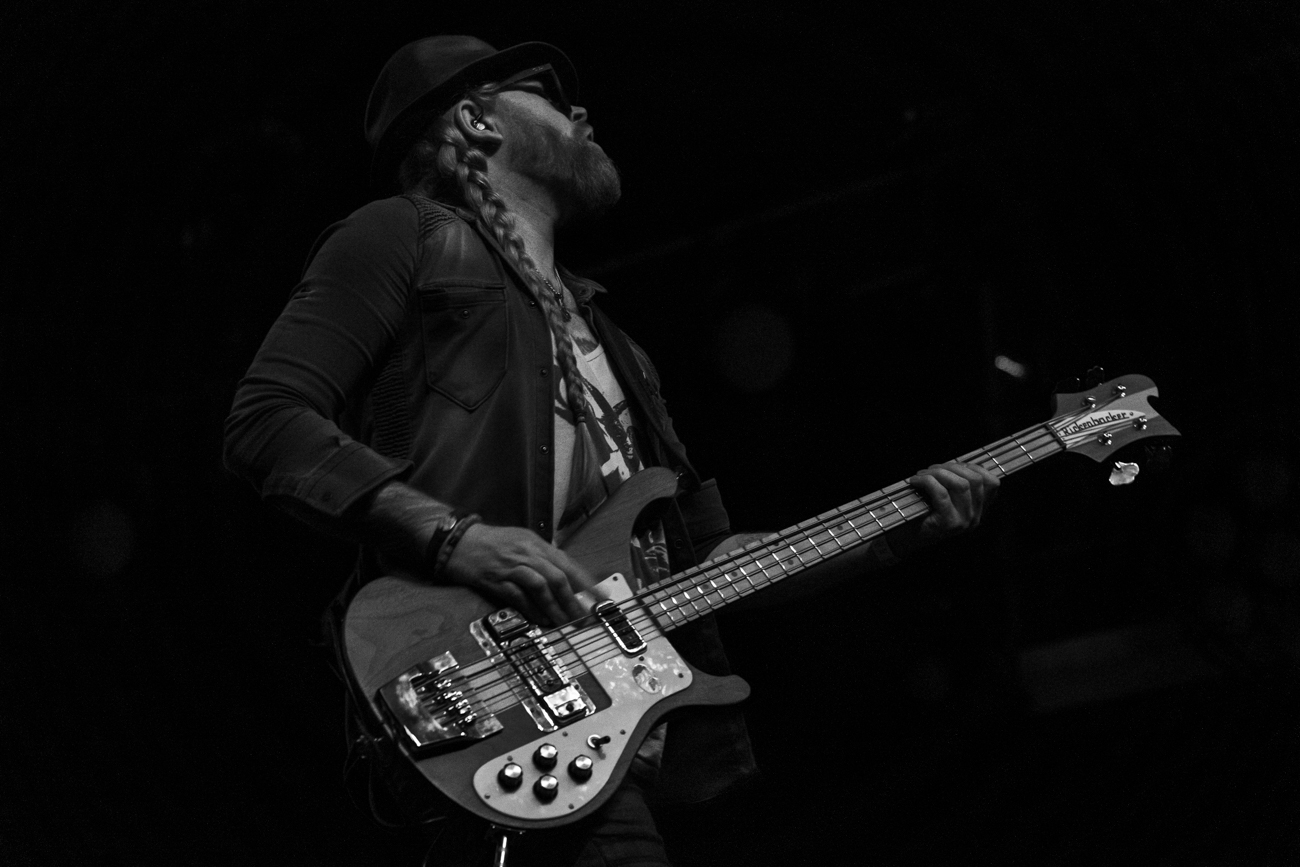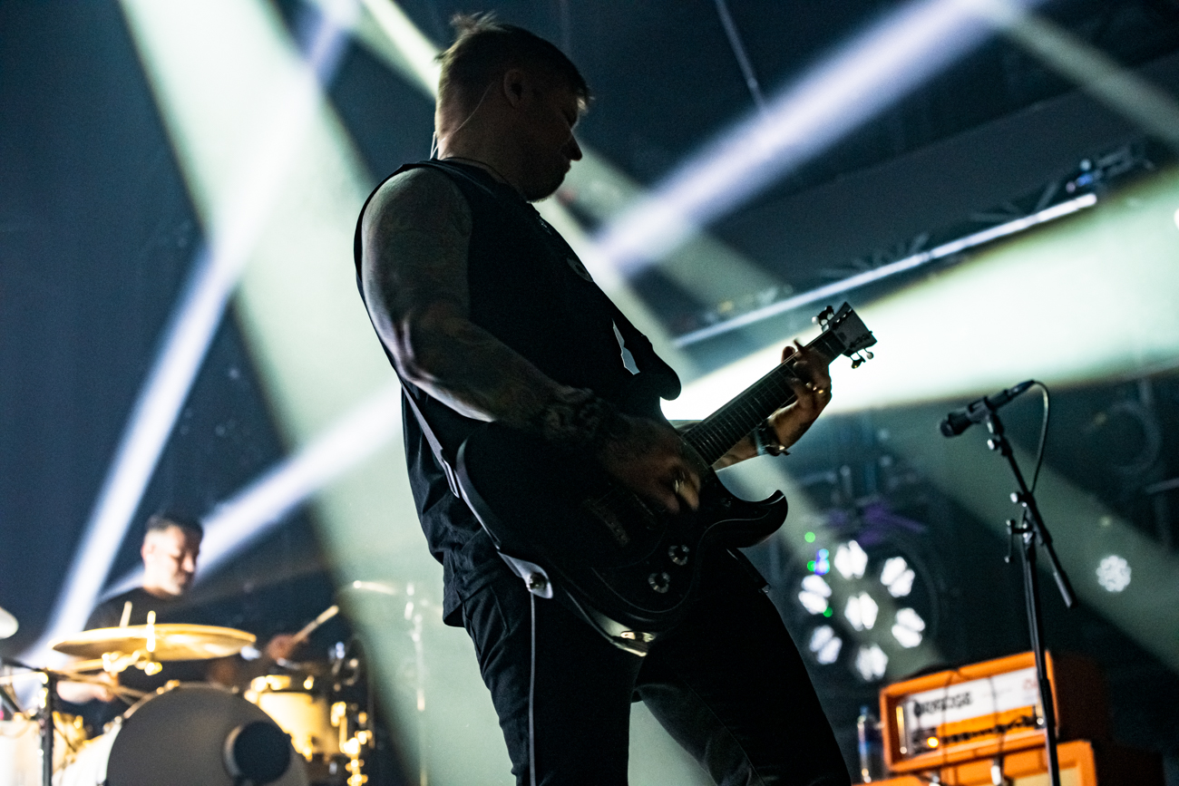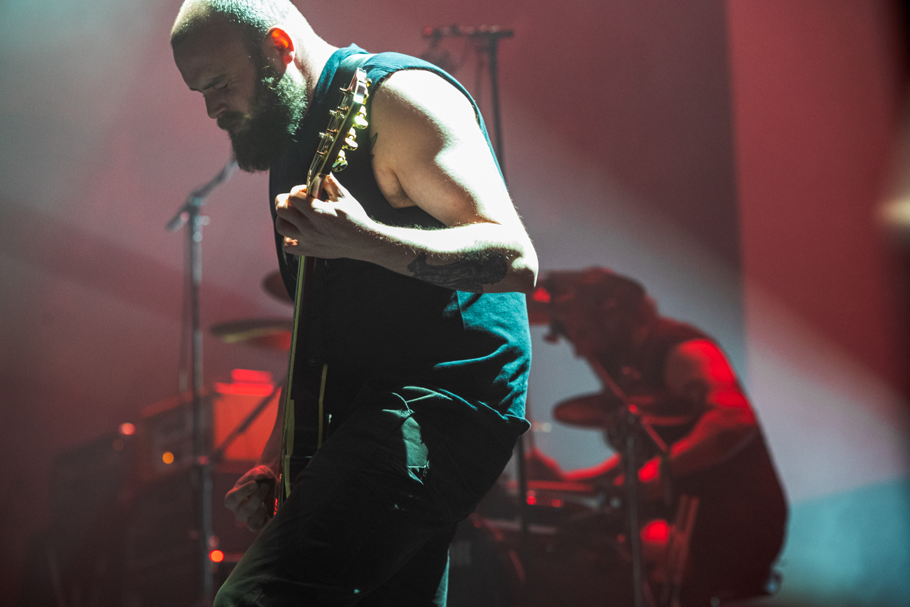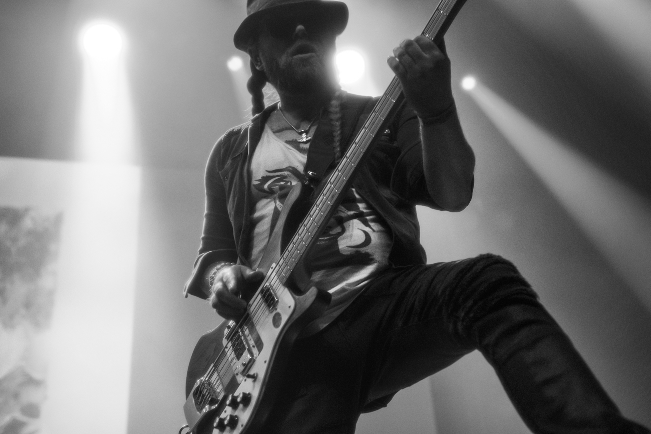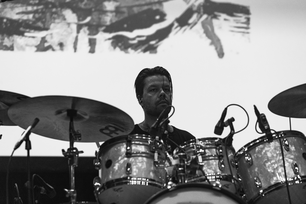After this little party we make our way back to catch Sólstafir playing Svatir Sandar in full, the album that hearkened their breakthrough. This album contained the gorgeous “Fjara”, their first hit, which is still played regularly by the band. Other songs of the much heavier album however have slowly faded out of the setlists as the band took a more polished path in their musical explorations. So it is a treat to see the band return to these riffy, grittier works, accompanied by videos from Icelandic films to set the tone. Having seen Sólstafir perform when this album was still fresh, the growth of the band as a unit, performers and in their craft is evident, and a joy to behold. We shall assume that light tech is a little rusty after two years of no gigs, or just not used to the 013’s massive array of lights, but the sometimes odd lighting can’t spoil the experience for those who love the Icelandic band playing.